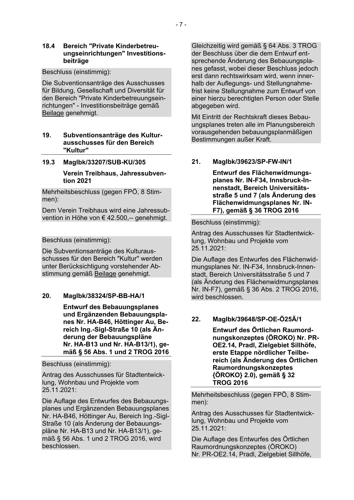 Mehrheitsbeschluss (gegen FPÖ, 8 Stimmen):