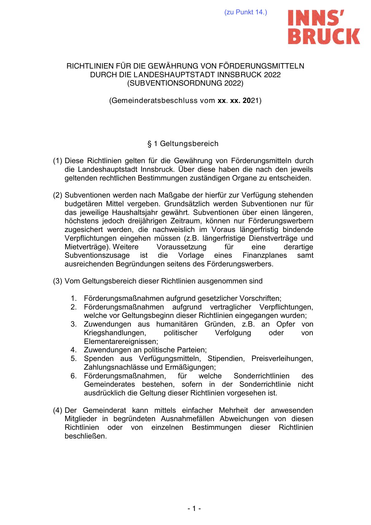 (1) Diese Richtlinien gelten für die Gewährung von Förderungsmitteln durch