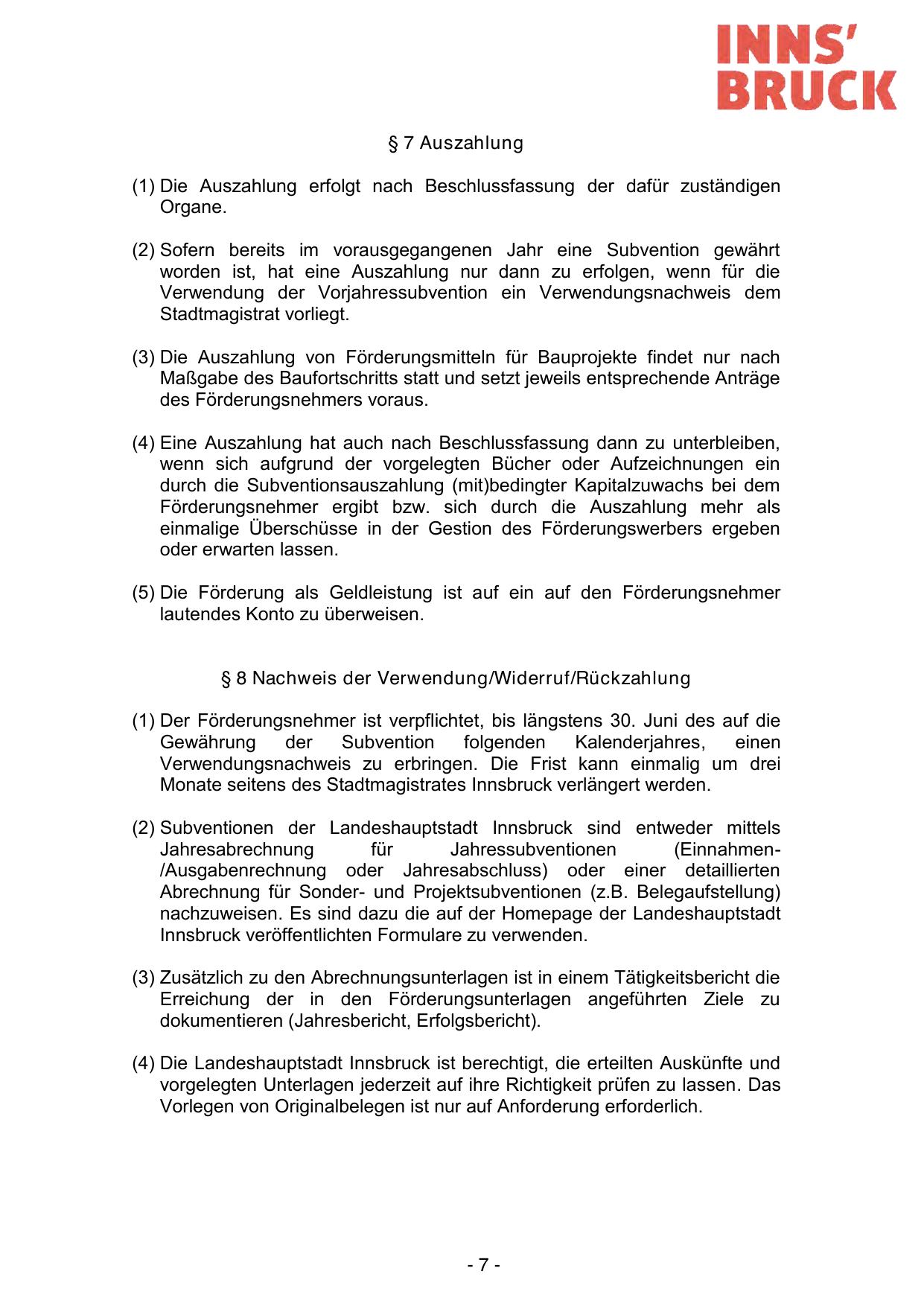 (2) Subventionen der Landeshauptstadt Innsbruck sind entweder mittels