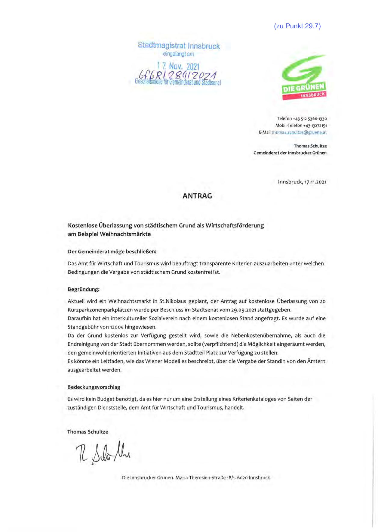 Kurzparkzonenparkplätzen wurde per Beschluss im Stadtsenat vom 29.09.2021 stattgegeben.