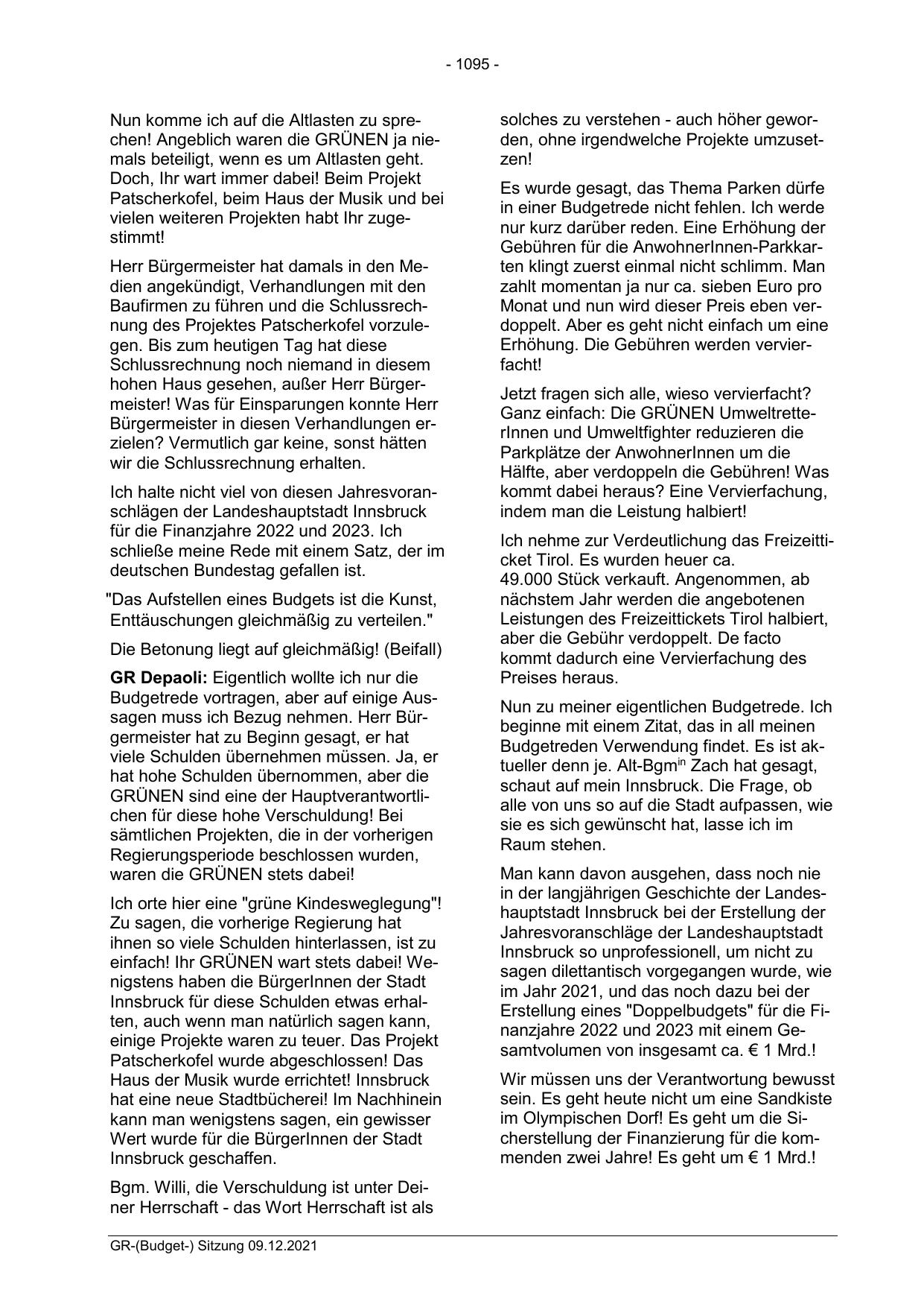 Ich halte nicht viel von diesen Jahresvoranschlägen der Landeshauptstadt Innsbruck