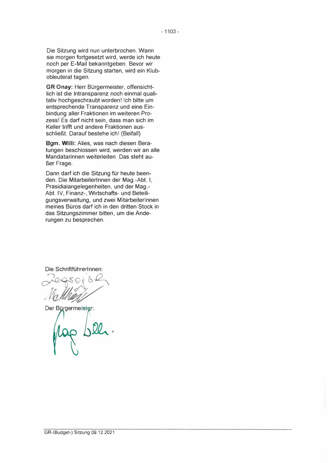 GR-(Budget-) Sitzung 09.12.2021