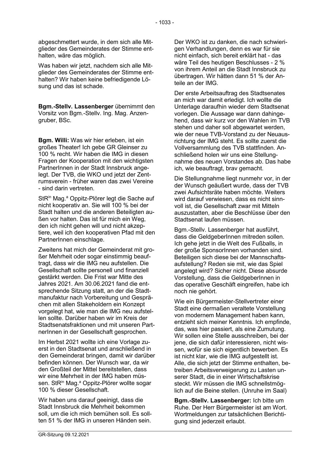 wir eine Mehrheit in der IMG haben müssen. StRin Mag.a Oppitz-Plörer wollte sogar