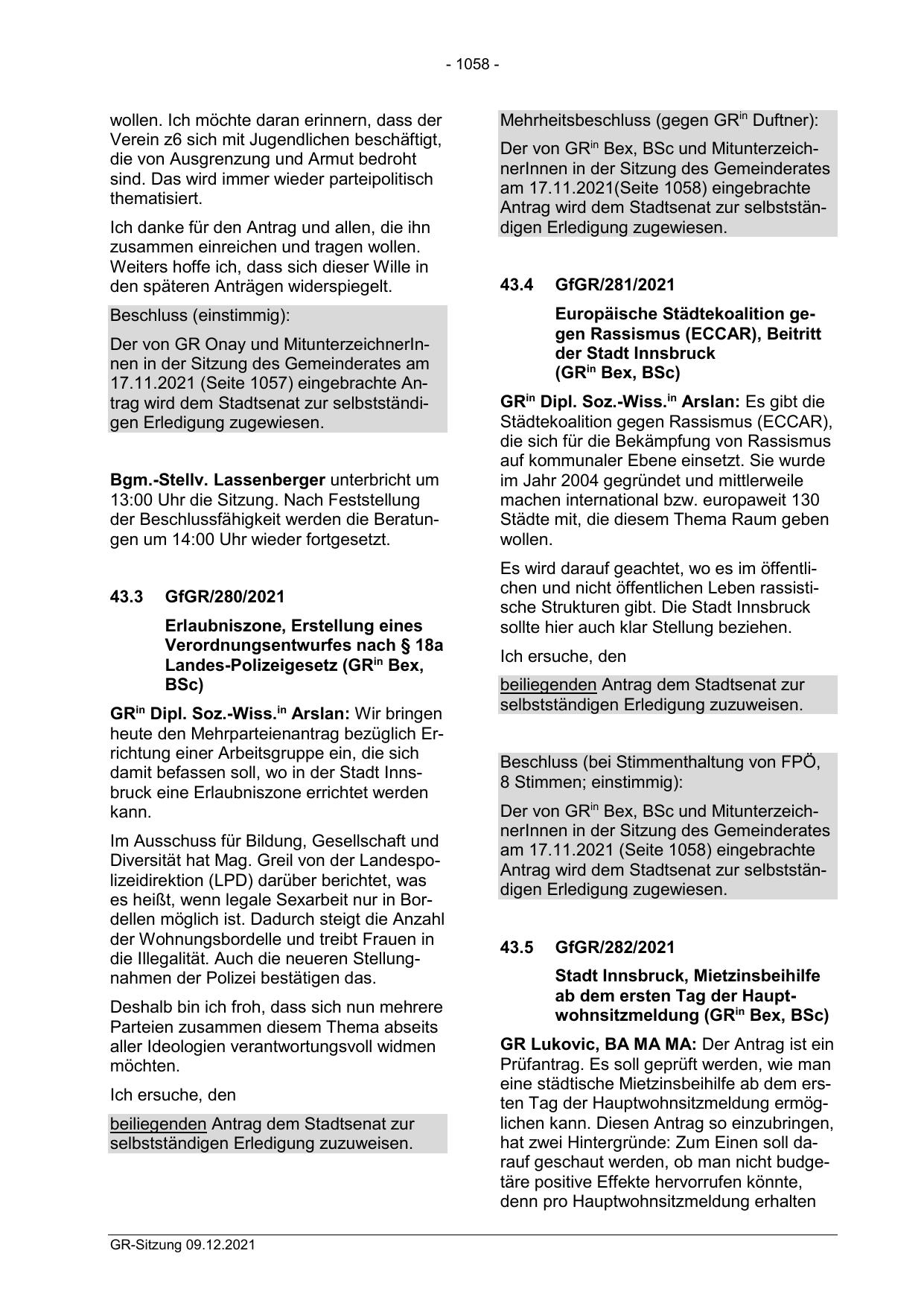 am 17.11.2021 (Seite 1058) eingebrachte