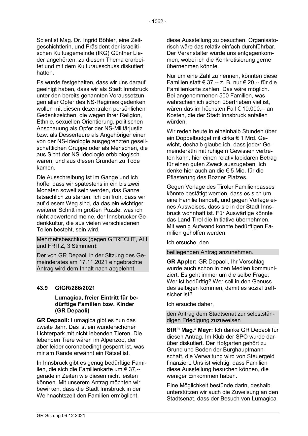 Der von GR Depaoli in der Sitzung des Gemeinderates am 17.11.2021 eingebrachte