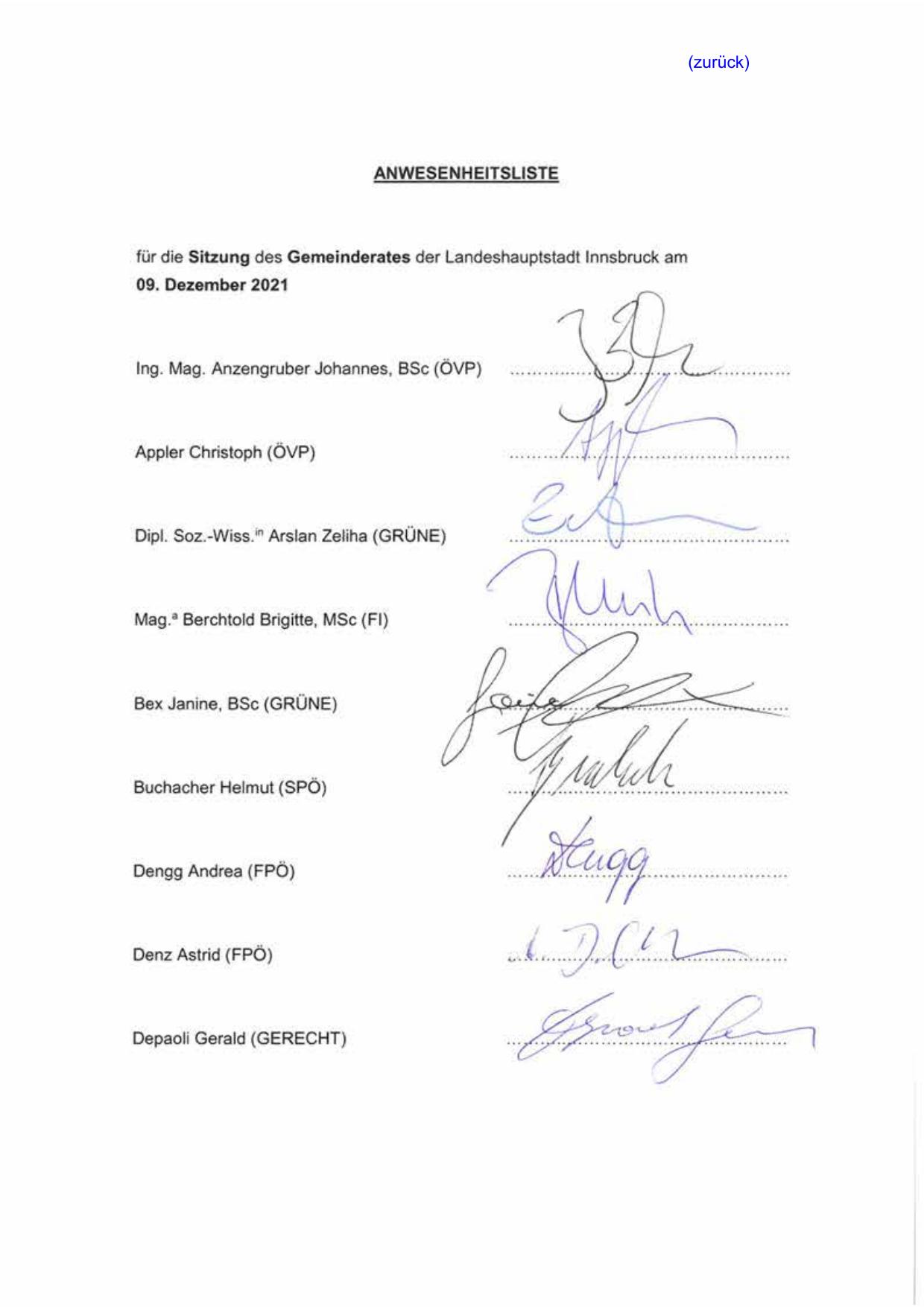 für die Sitzung des Gemeinderates der Landeshauptstadt Innsbruck am