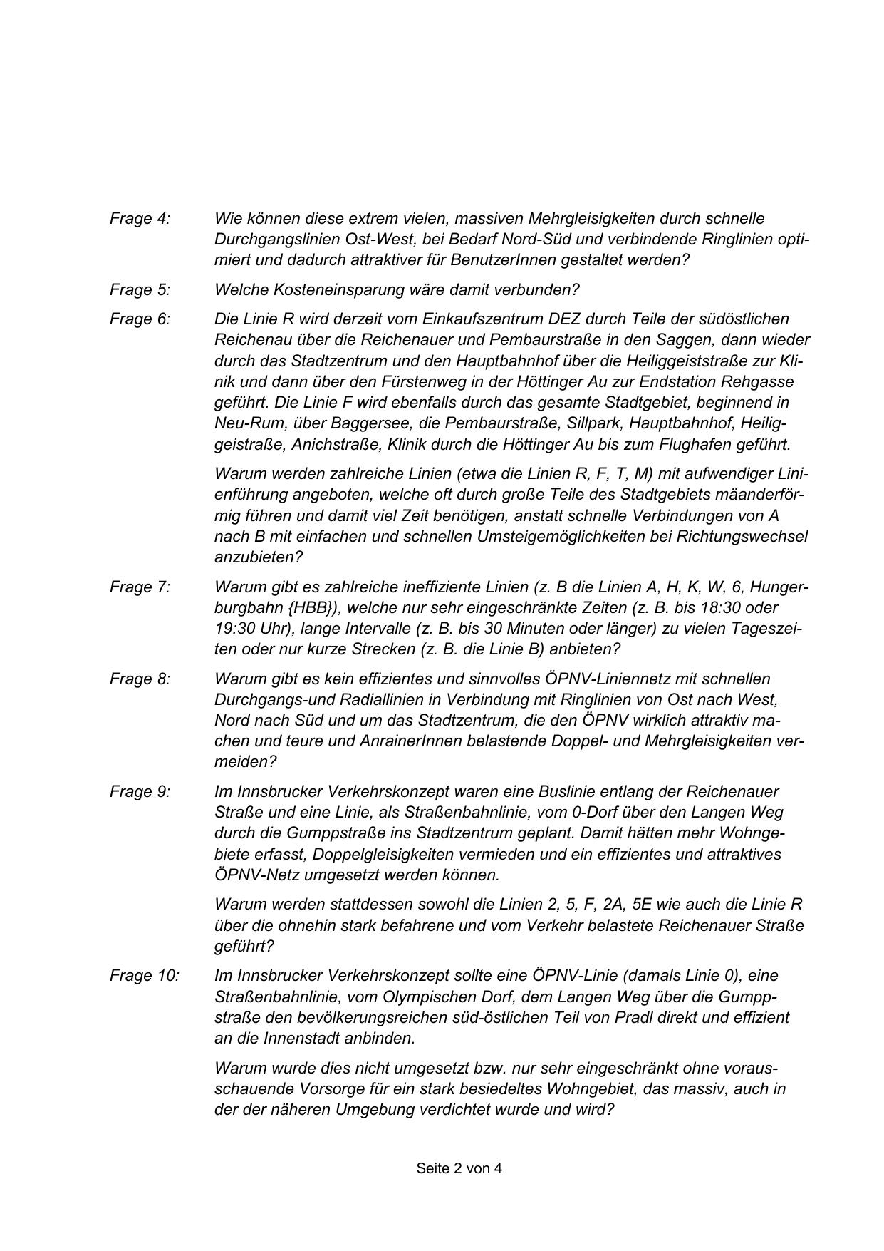 Straßenbahnlinie, vom Olympischen Dorf, dem Langen Weg über die Gumppstraße den bevölkerungsreichen süd-östlichen Teil von Pradl direkt und effizient