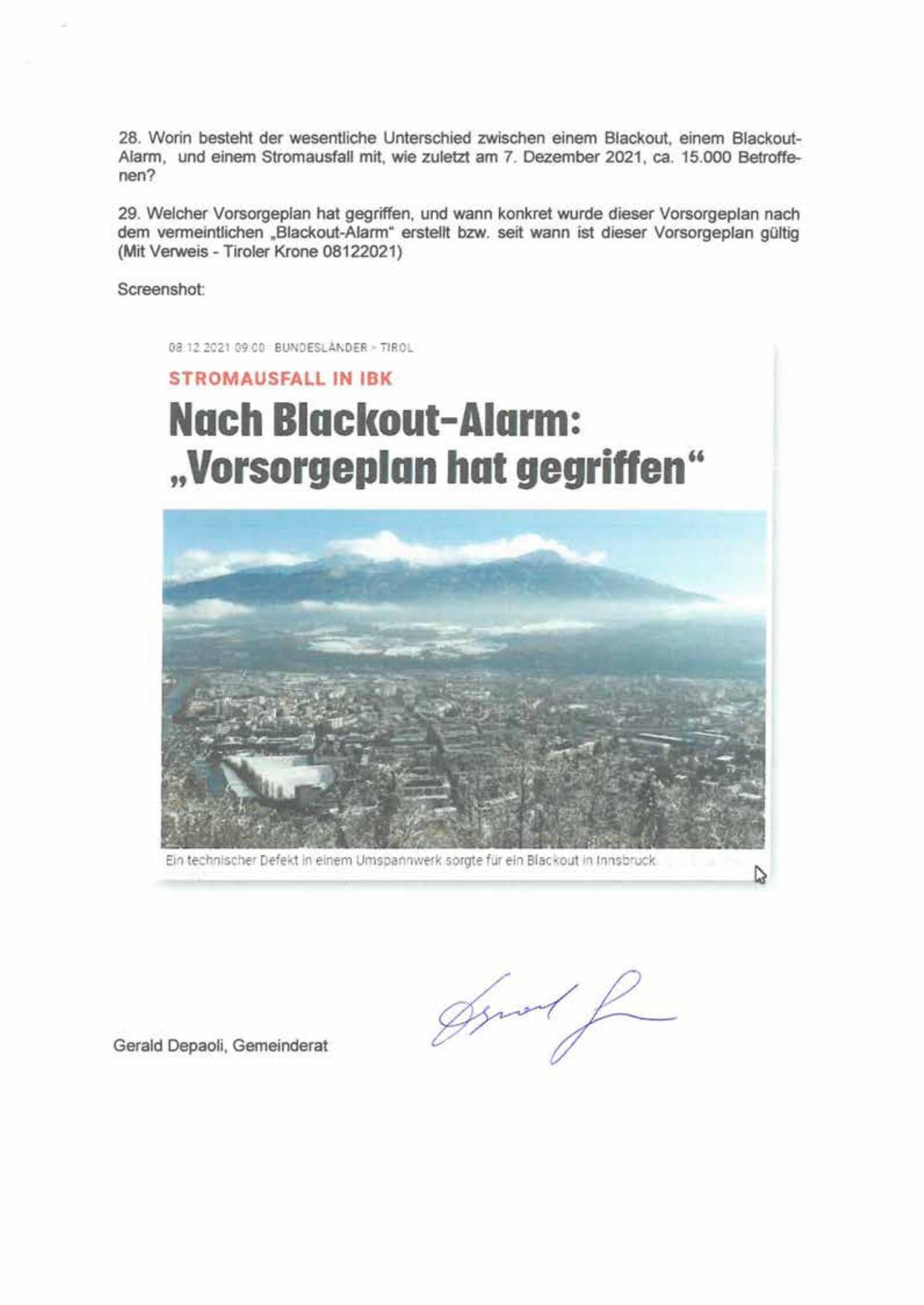 dem vermeintlichen "Blackout-Alarm" erstellt bzw. seit wann ist dieser Vorsorgeplan gültig