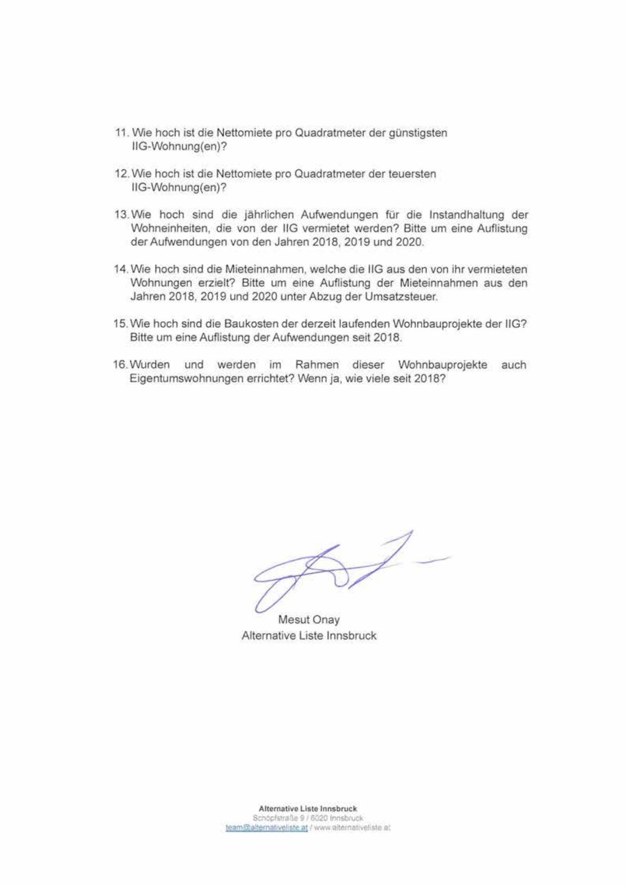 Wohneinheiten , die von der IIG vermietet werden? Bitte um eine Auflistung
