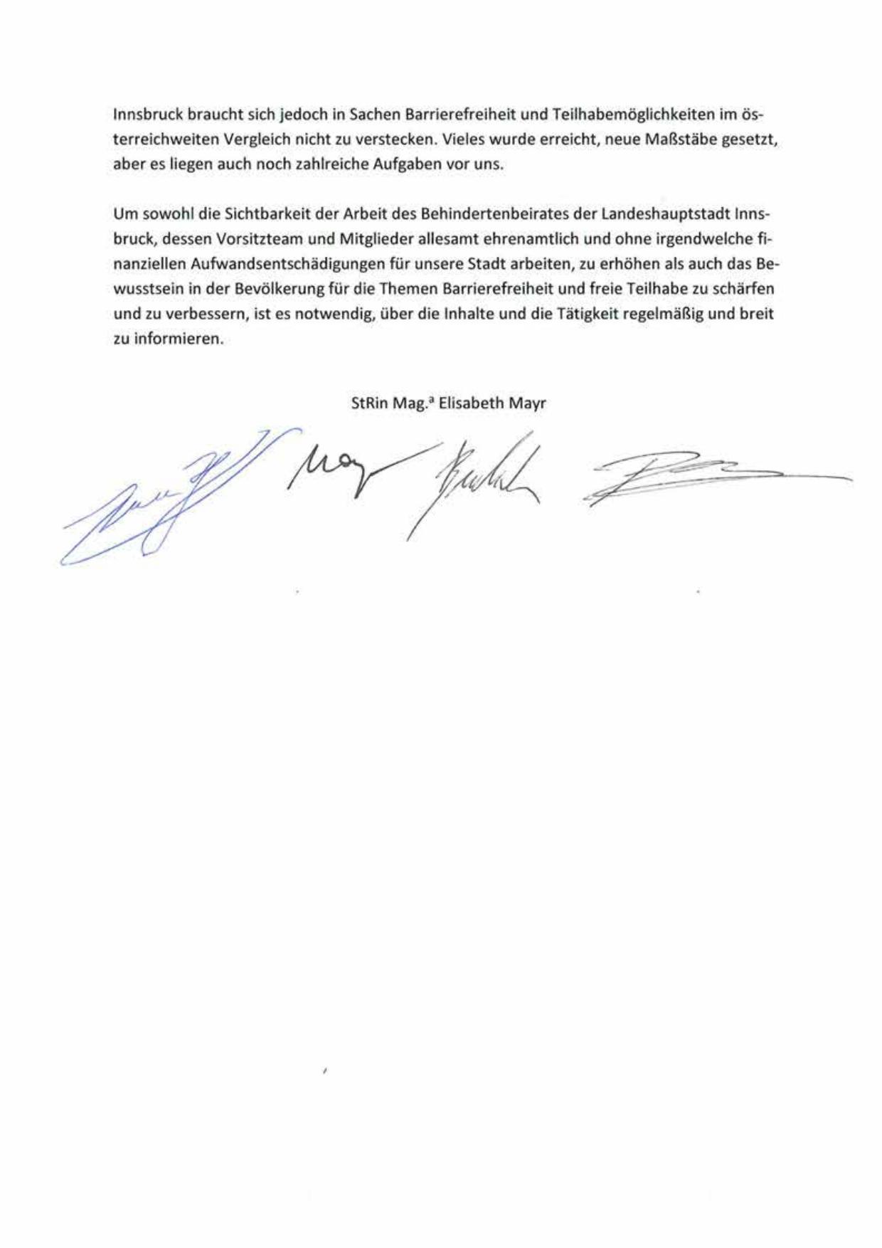 Um sowoh l die Sichtbarkeit der Arbeit des Behindertenbeirates der Landeshauptstadt Innsbruck, dessen Vorsitzteam und Mitglieder allesamt ehrenamtlich und ohne irgendwelche finanziellen Aufwandsentschädigungen für unsere Stadt arbeiten, zu erhöhen als auch das Bewusstsein in der Bevölkerung für die Themen Barrierefreiheit und freie Teilhabe zu schärfen