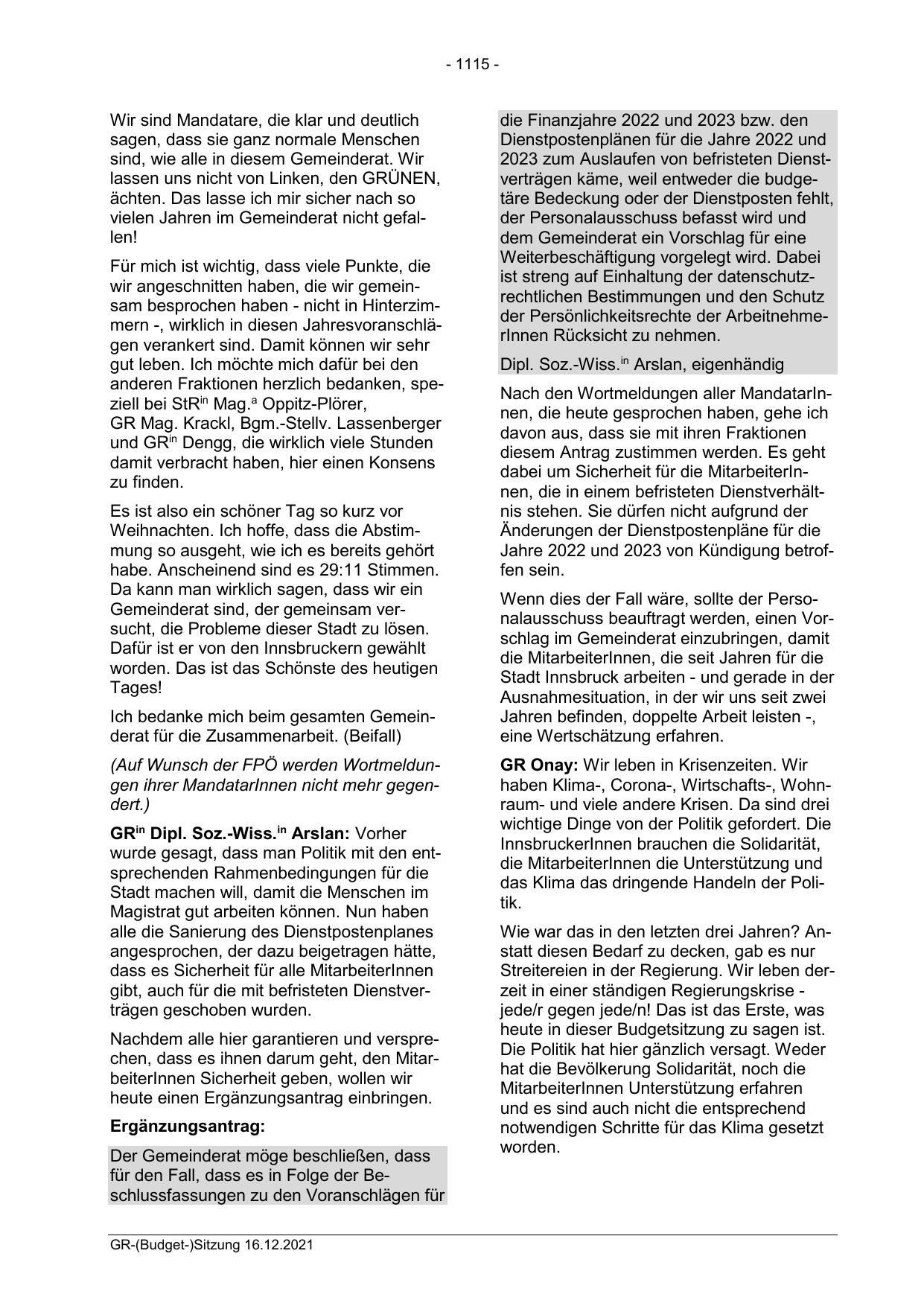 (Auf Wunsch der FPÖ werden Wortmeldungen ihrer MandatarInnen nicht mehr gegendert.)