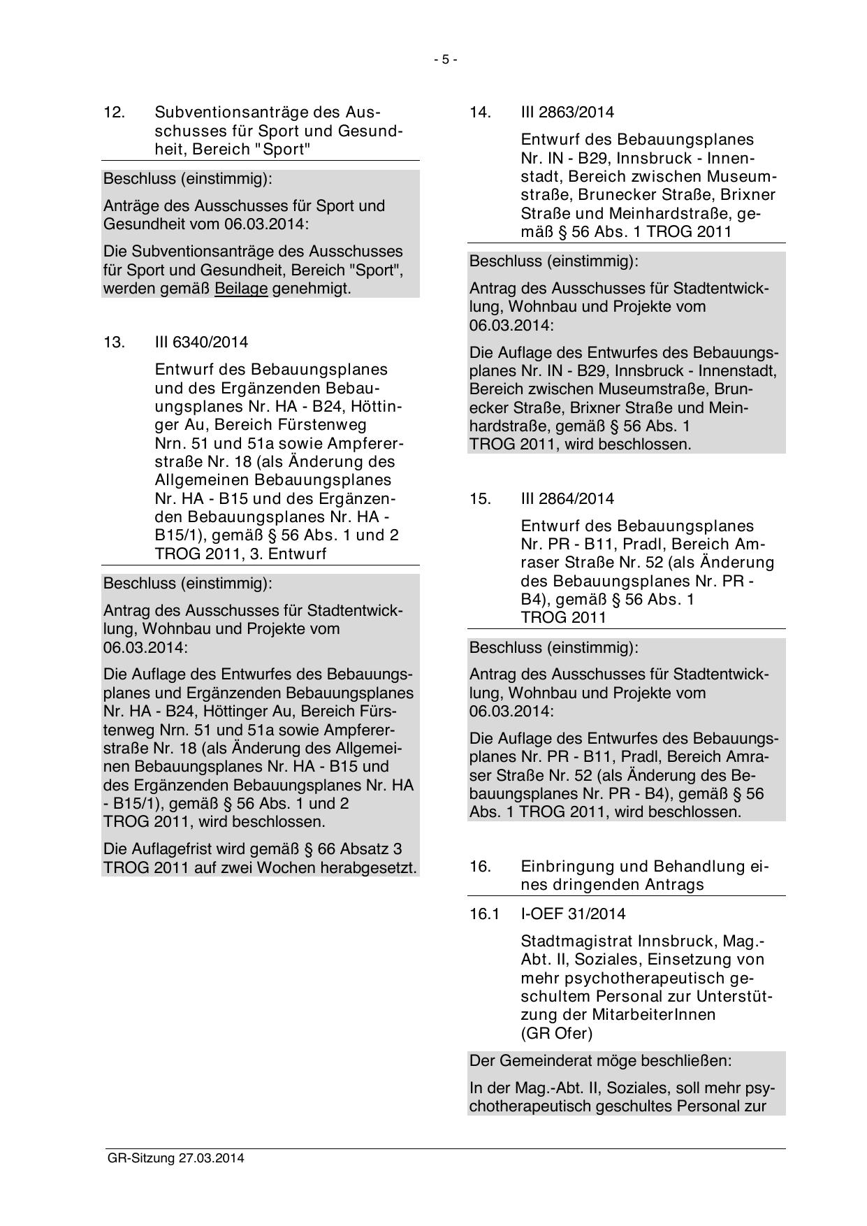 Stadtmagistrat Innsbruck, Mag.Abt. II, Soziales, Einsetzung von