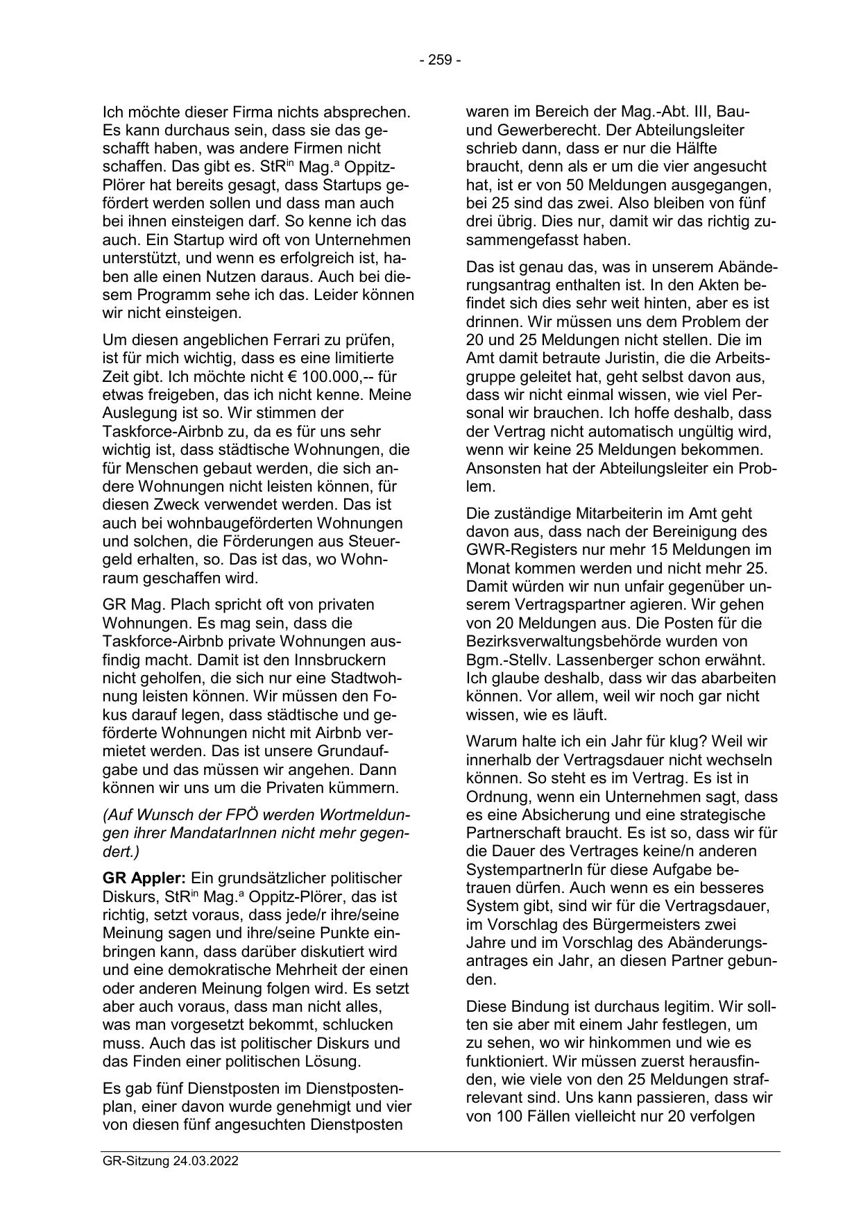nicht geholfen, die sich nur eine Stadtwohnung leisten können. Wir müssen den Fokus darauf legen, dass städtische und geförderte Wohnungen nicht mit Airbnb vermietet werden. Das ist unsere Grundaufgabe und das müssen wir angehen. Dann