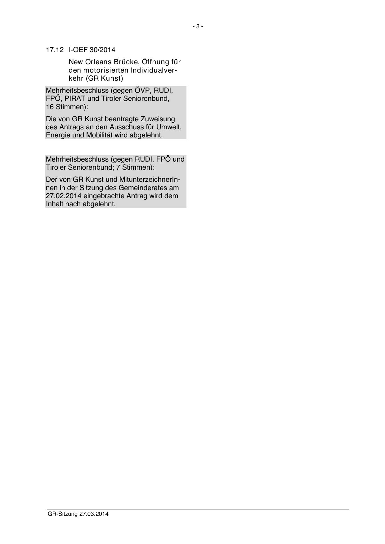 Mehrheitsbeschluss (gegen RUDI, FPÖ und
