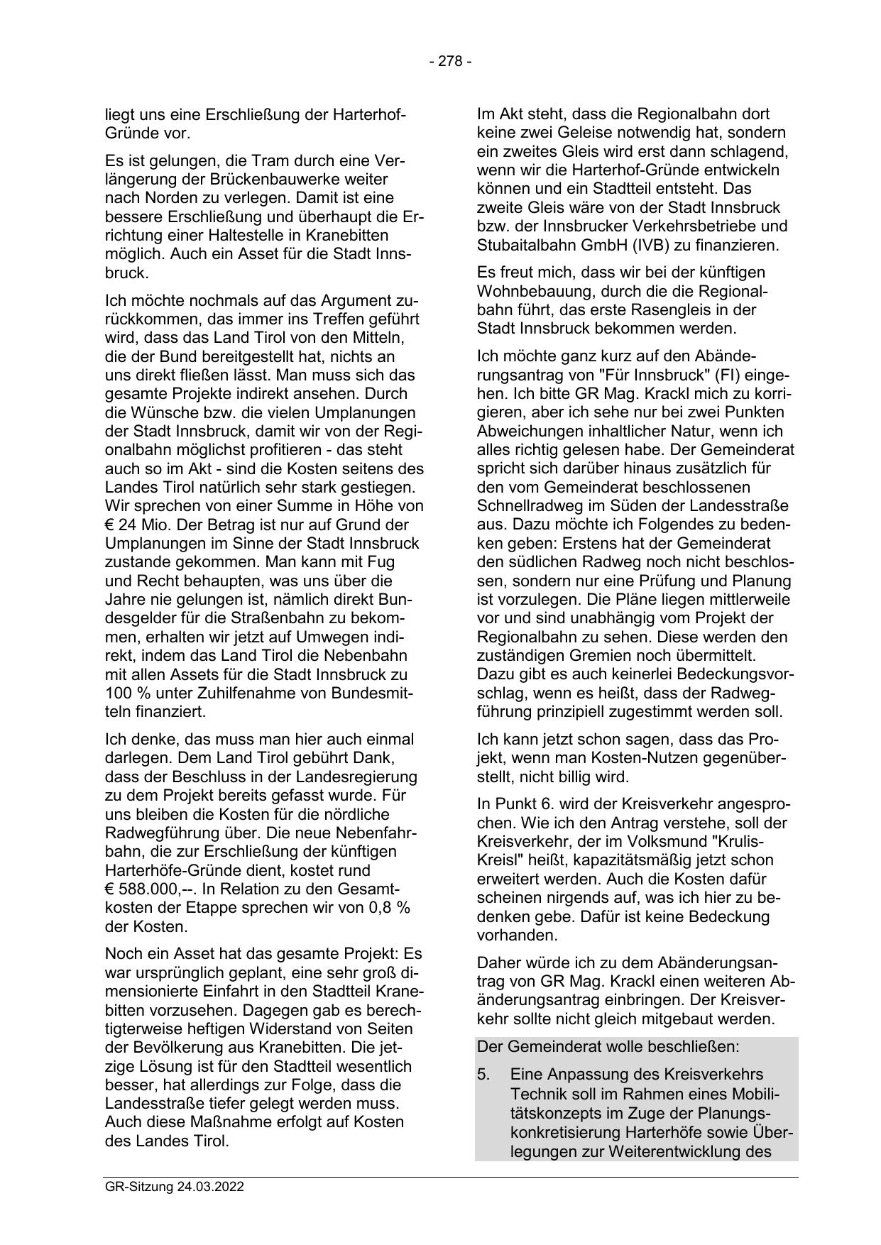 der Stadt Innsbruck, damit wir von der Regionalbahn möglichst profitieren - das steht