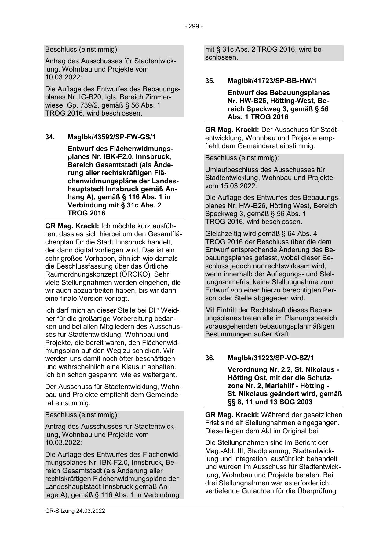 GR Mag. Krackl: Ich möchte kurz ausführen, dass es sich hierbei um den Gesamtflächenplan für die Stadt Innsbruck handelt,