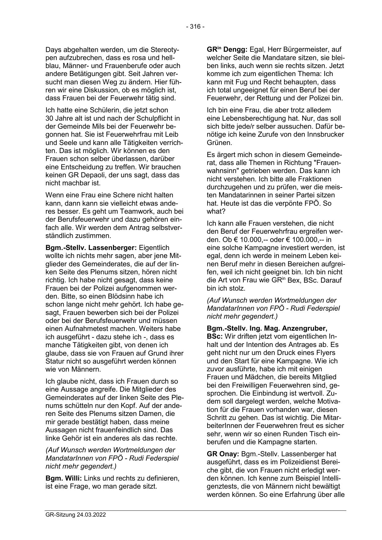 Es ärgert mich schon in diesem Gemeinderat, dass alle Themen in Richtung "Frauenwahnsinn" getrieben werden. Das kann ich