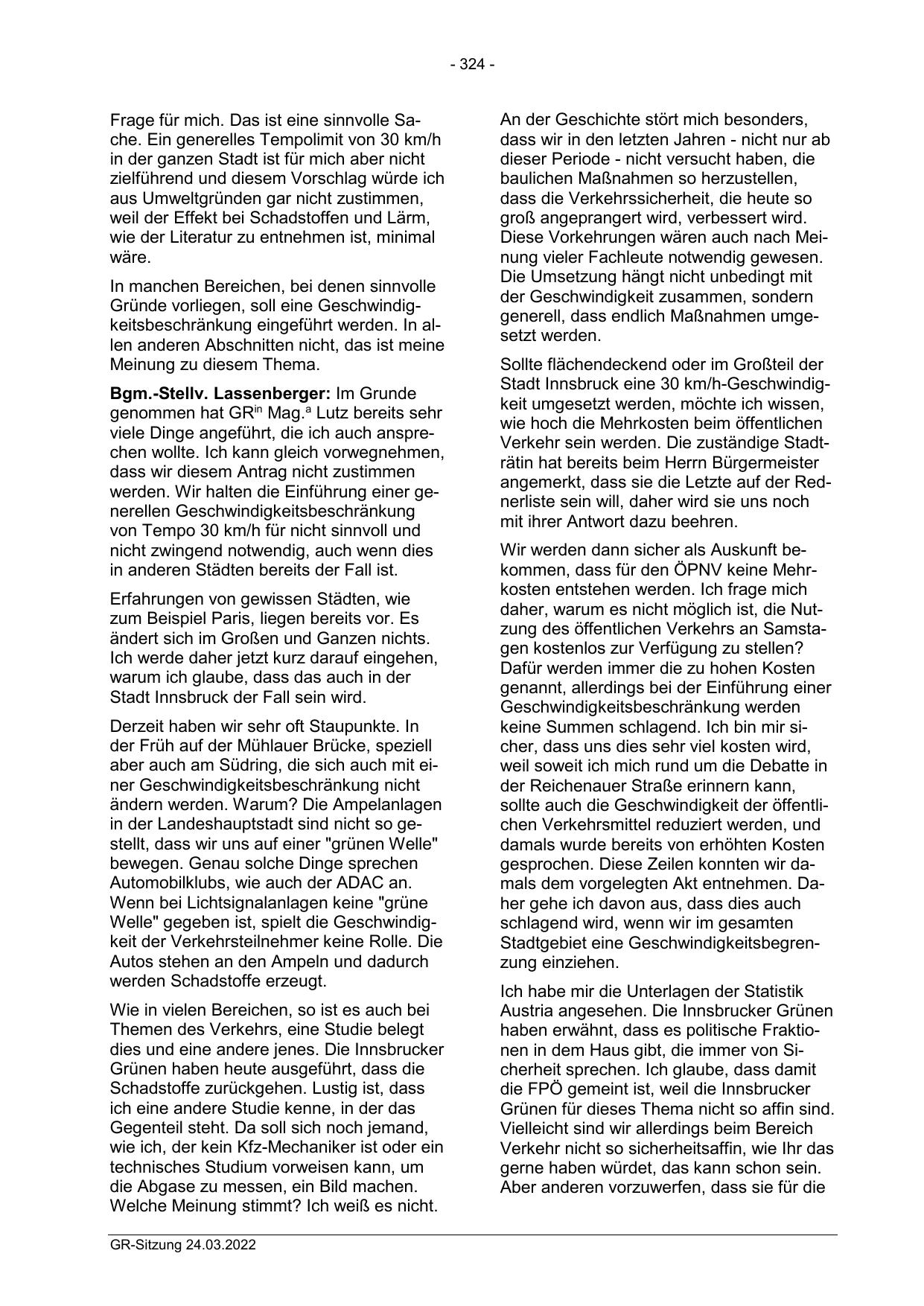 Stadt Innsbruck eine 30 km/h-Geschwindigkeit umgesetzt werden, möchte ich wissen,