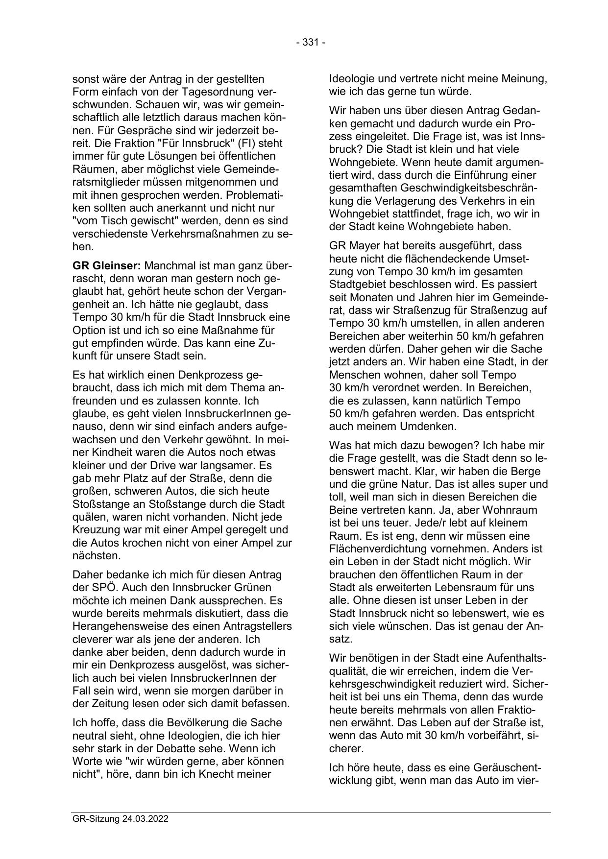 Form einfach von der Tagesordnung verschwunden. Schauen wir, was wir gemeinschaftlich alle letztlich daraus machen können. Für Gespräche sind wir jederzeit bereit. Die Fraktion "Für Innsbruck" (FI) steht