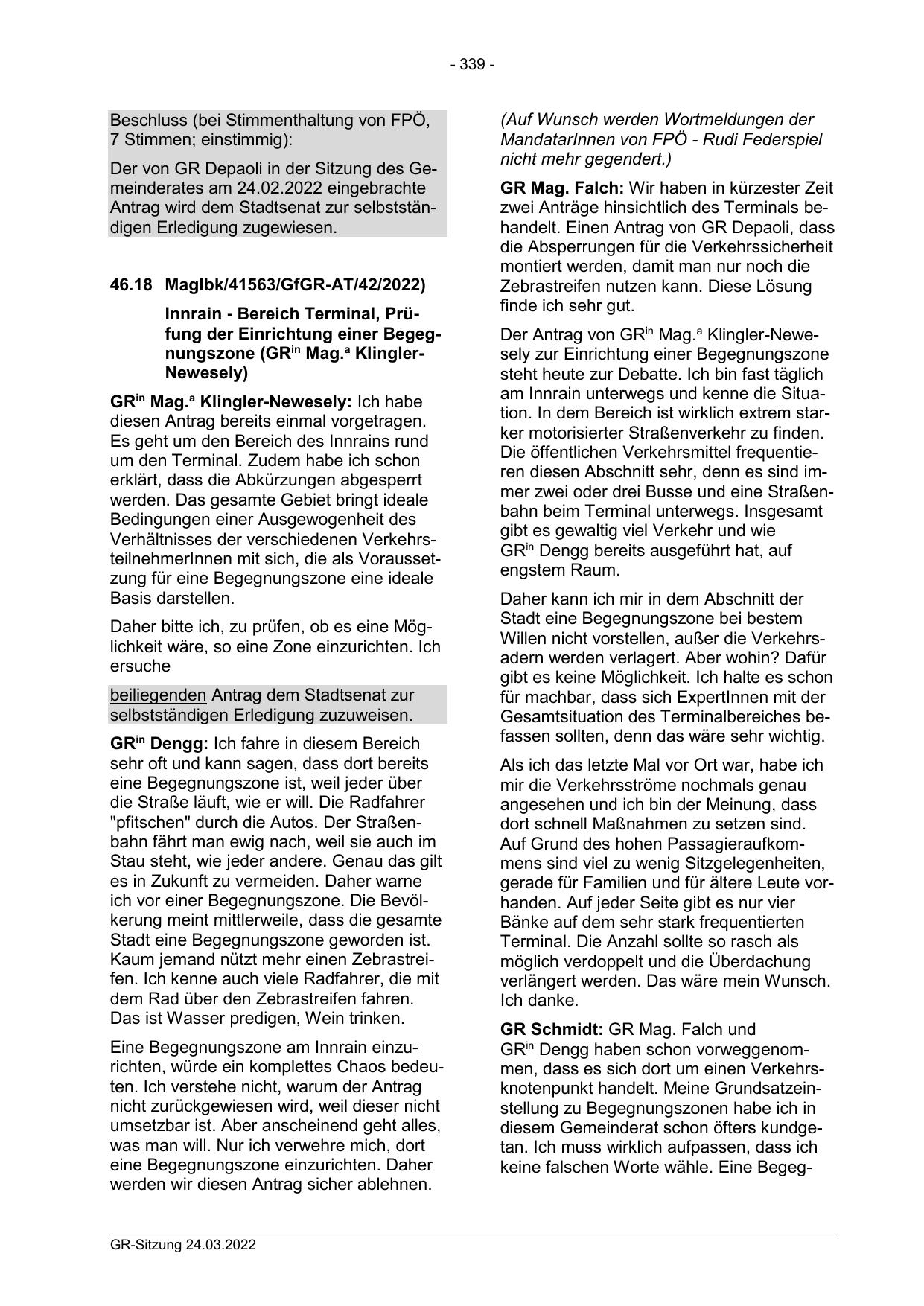 Der von GR Depaoli in der Sitzung des Gemeinderates am 24.02.2022 eingebrachte