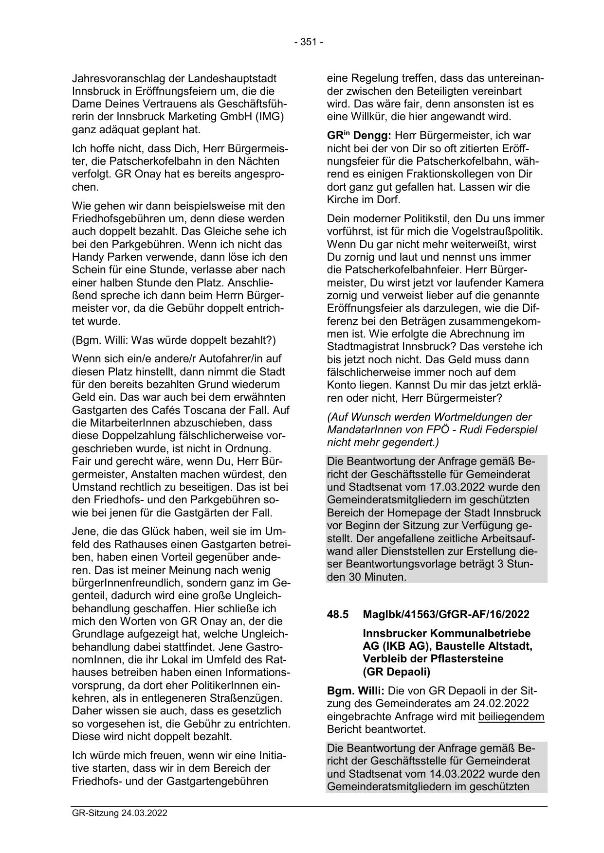 Bgm. Willi: Die von GR Depaoli in der Sitzung des Gemeinderates am 24.02.2022