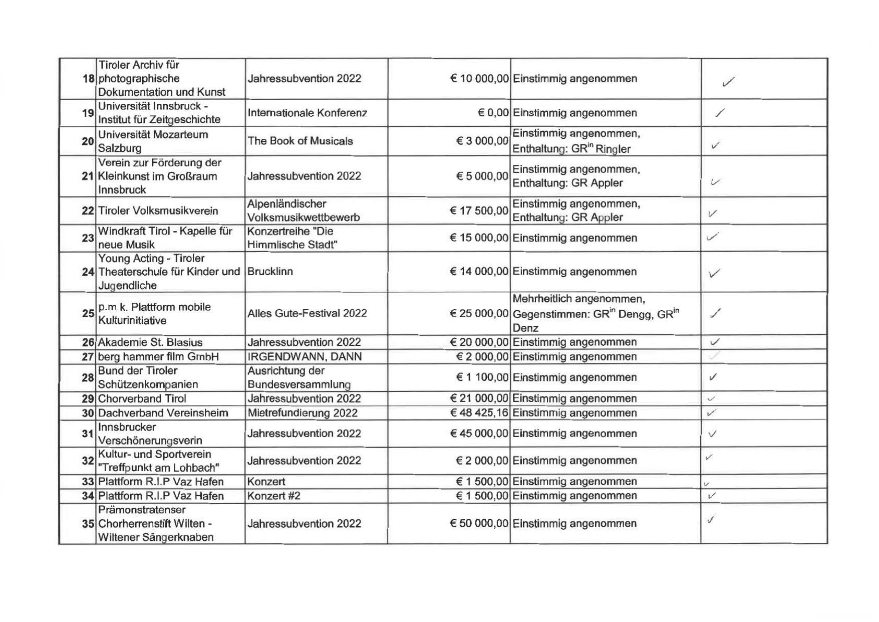 € 25 000,00 Gegenstimmen: GR;0 Dengg, GR1"
