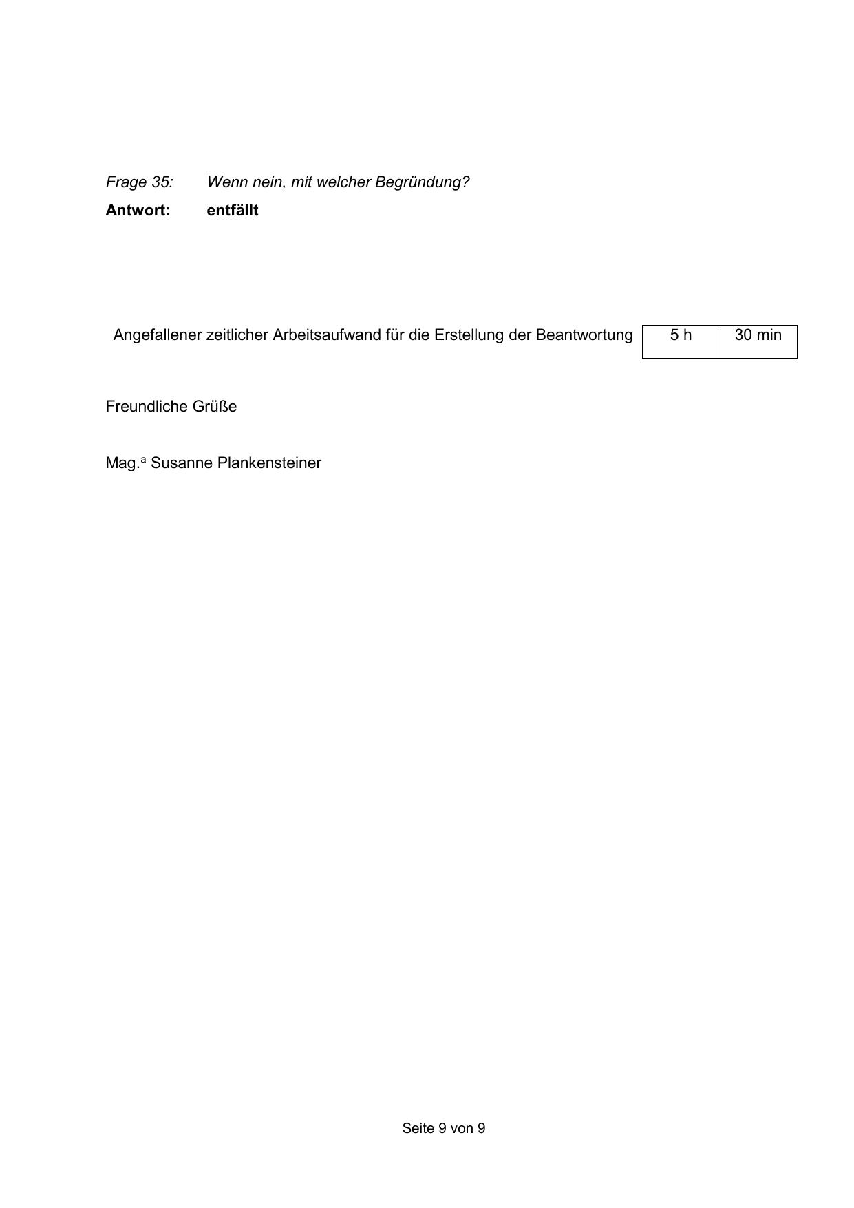 Angefallener zeitlicher Arbeitsaufwand für die Erstellung der Beantwortung