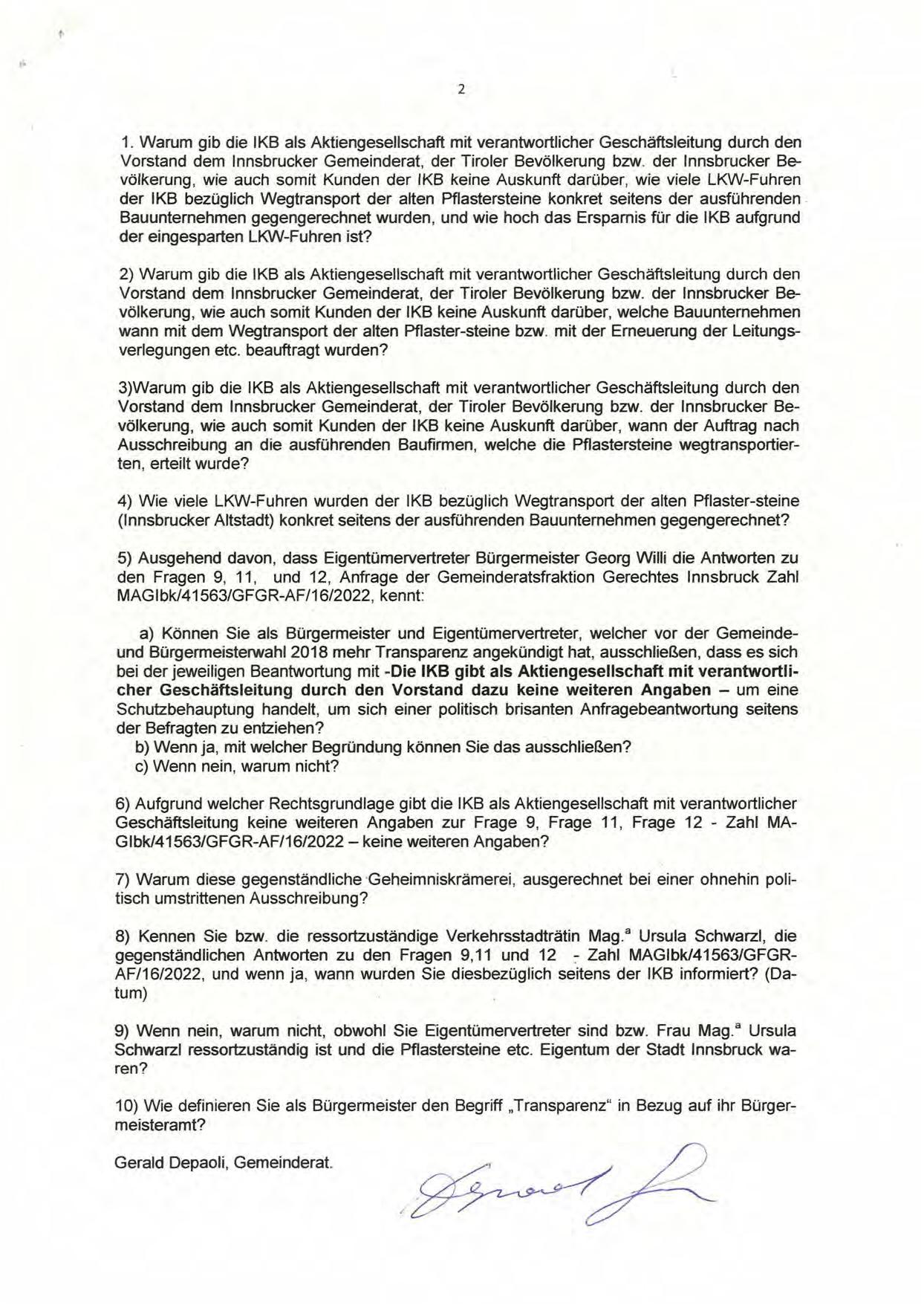 Schwarzl ressortzuständig ist und die Pflastersteine etc. Eigentum der Stadt Innsbruck waren?