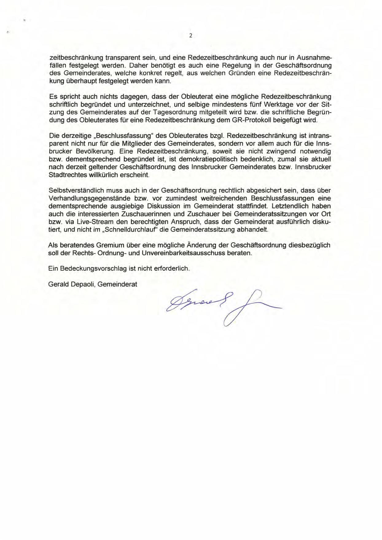 nach derzeit geltender Geschäftsordnung des lnnsbrucker Gemeinderates bzw. lnnsbrucker