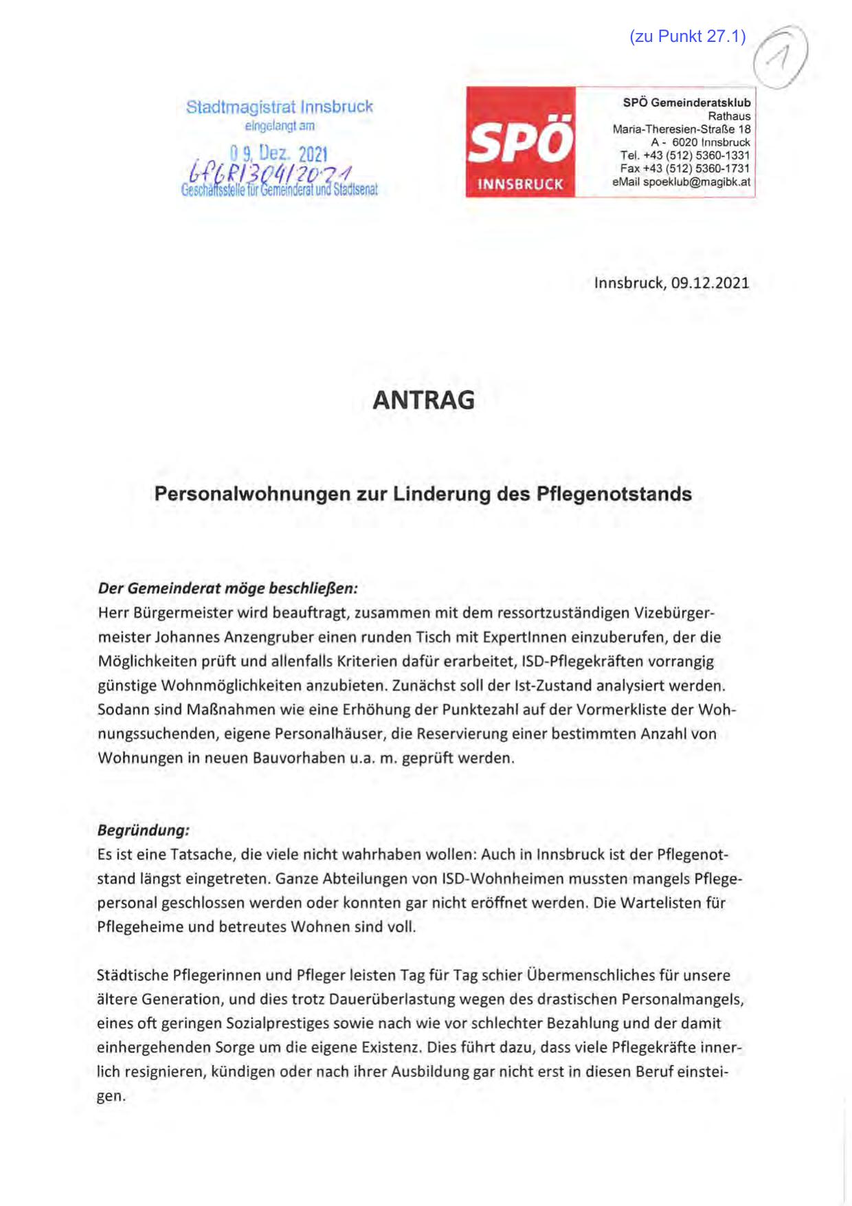 Herr Bürgermeister wird beauftragt, zusammen mit dem ressortzuständigen Vizebürgermeister Johannes Anzengruber einen runden Tisch mit Expertinnen einzuberufen, der die