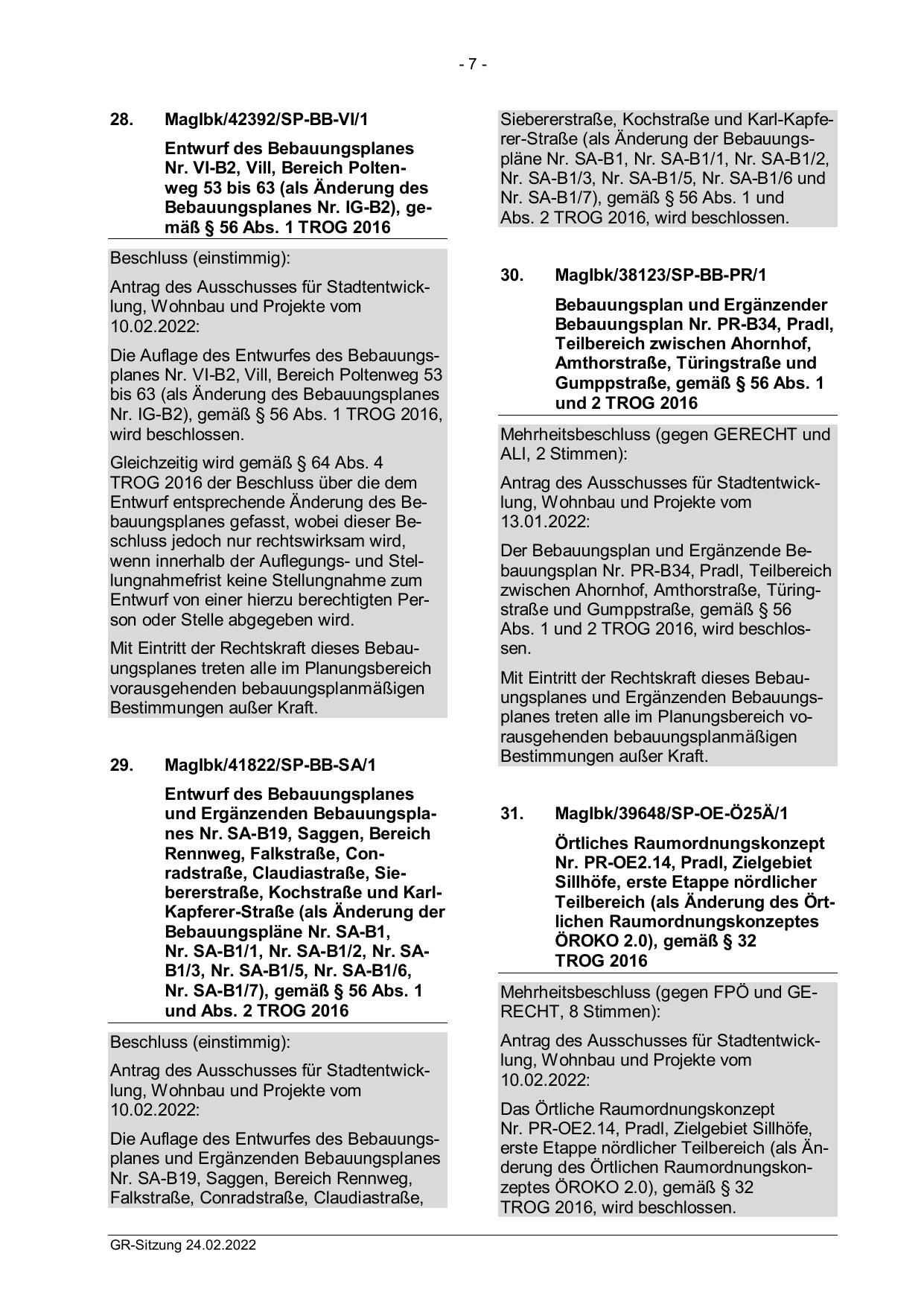 Mehrheitsbeschluss (gegen FPÖ und GERECHT, 8 Stimmen):