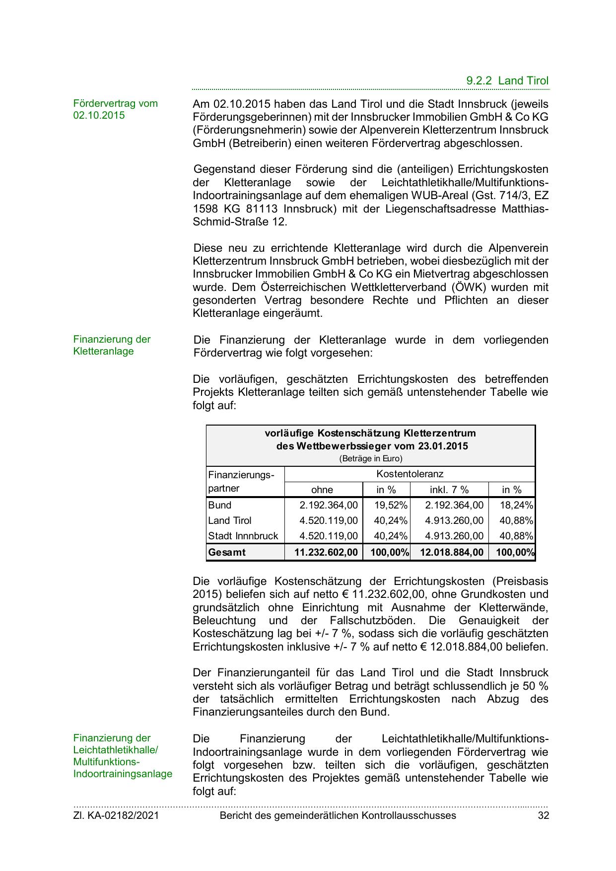 Der Finanzierunganteil für das Land Tirol und die Stadt Innsbruck