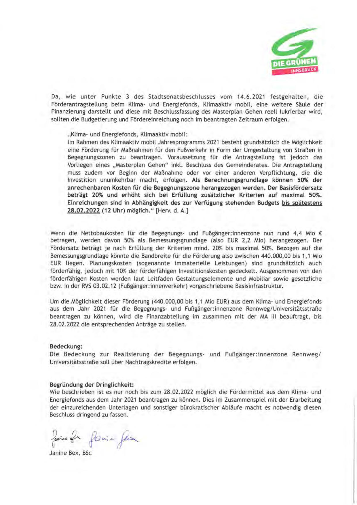 Die Bedeckung zur Realisierung der Begegnungs - und Fußgänger :innenzone Rennweg/