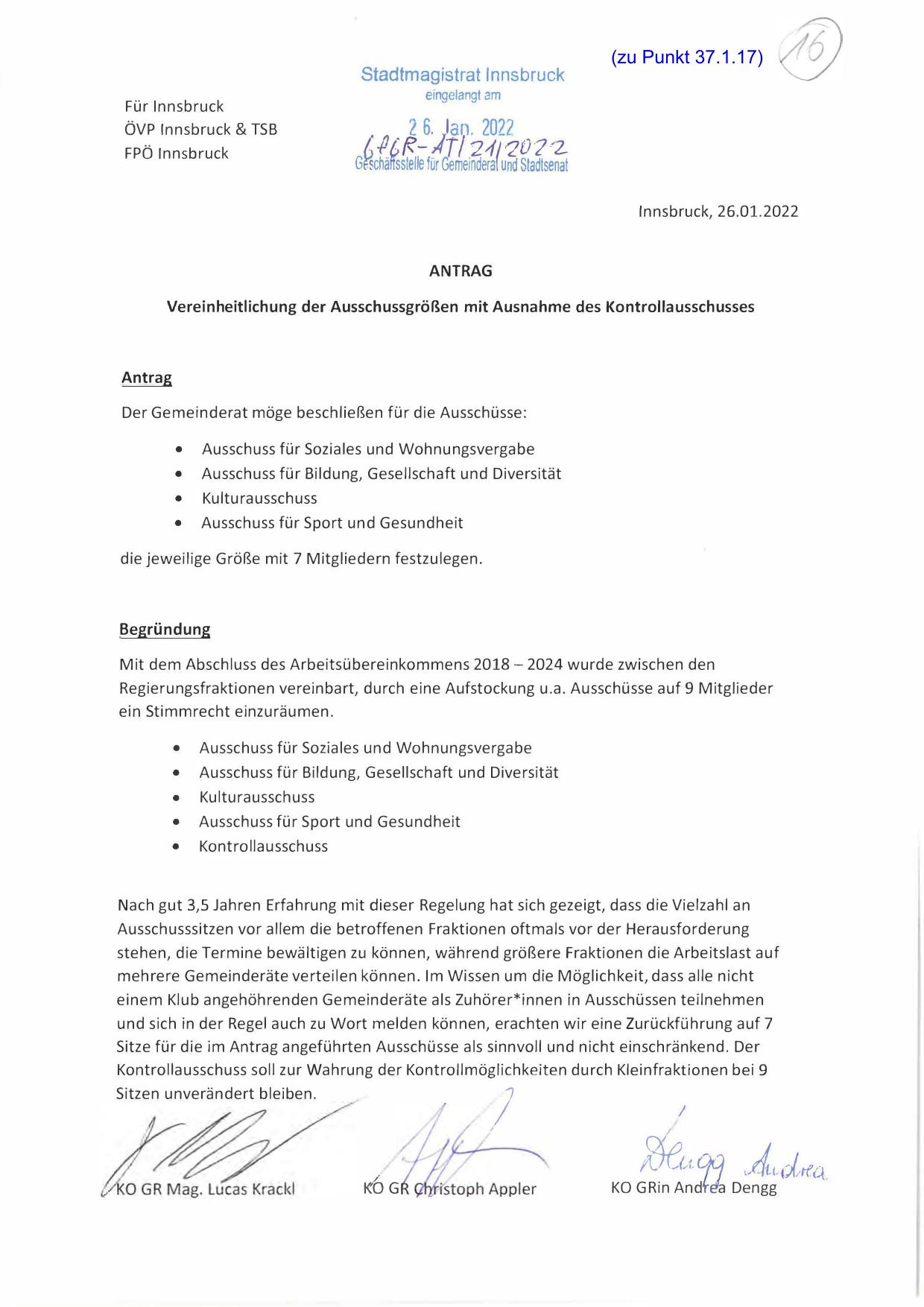 Sitze für die im Antrag angeführten Ausschüsse als sinnvoll und nicht einschränkend. Der