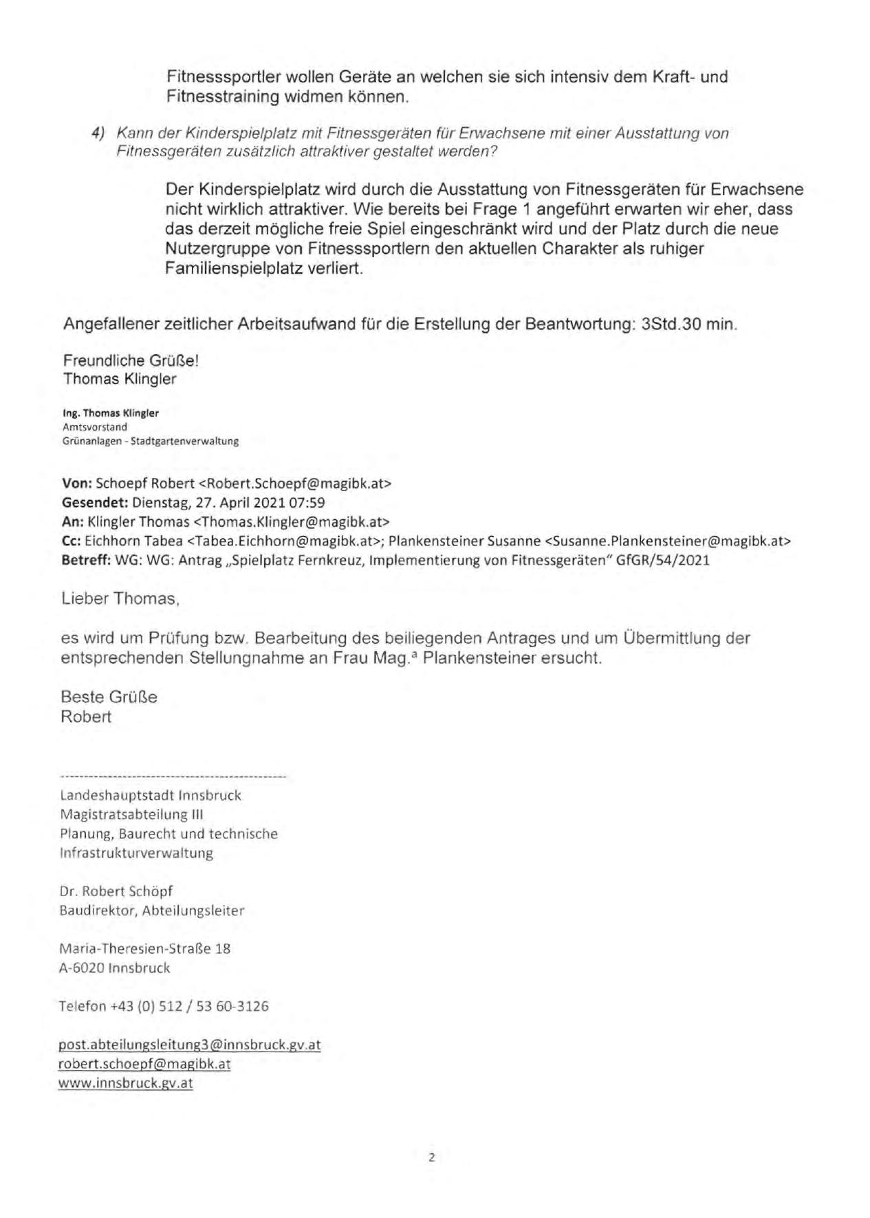 Betreff: WG: WG : Antrag „Spielplatz Fernkreuz, Implementierung von Fitnessgeräten" GfGR/ 54/2021
