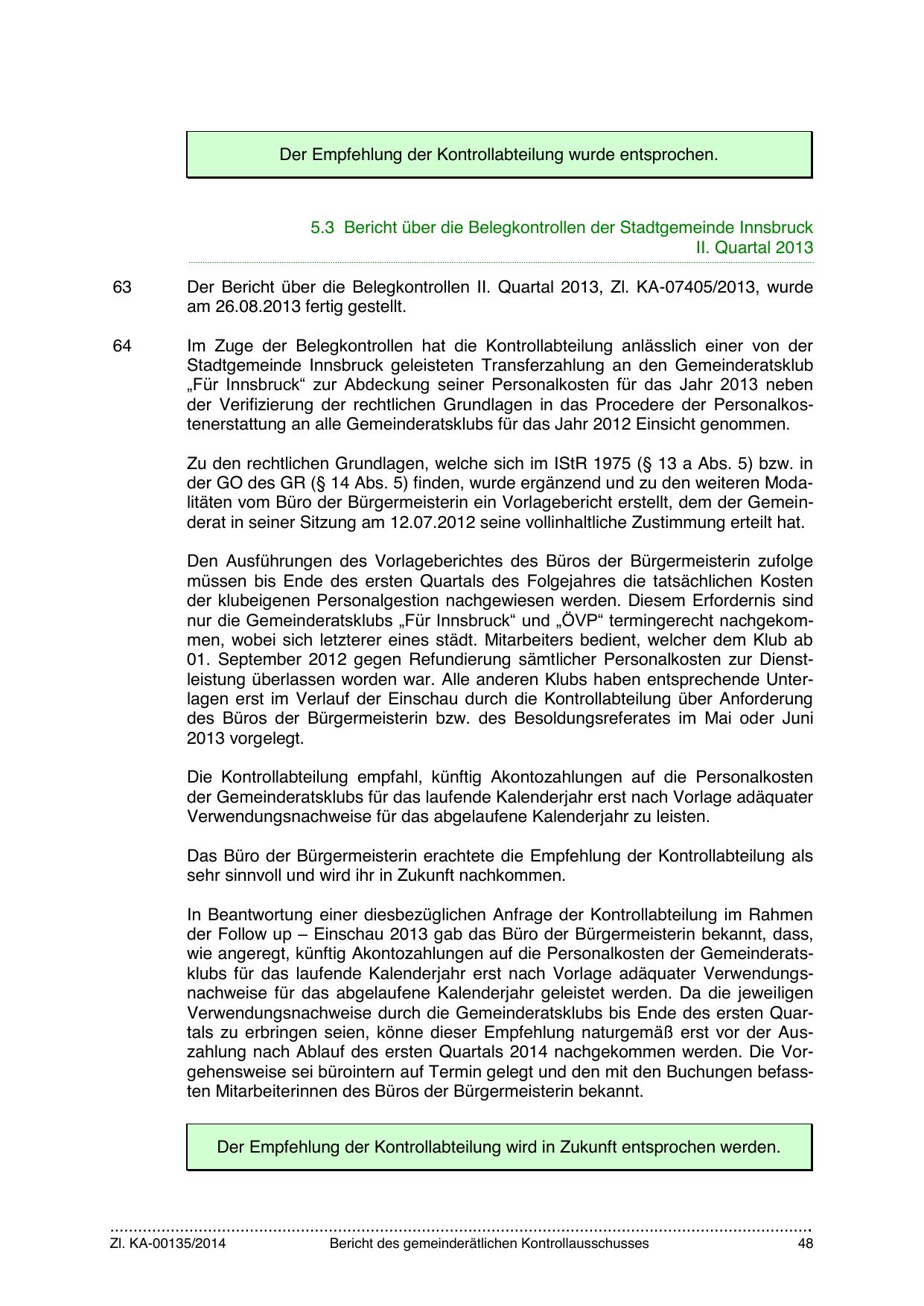 5.3 Bericht über die Belegkontrollen der Stadtgemeinde Innsbruck