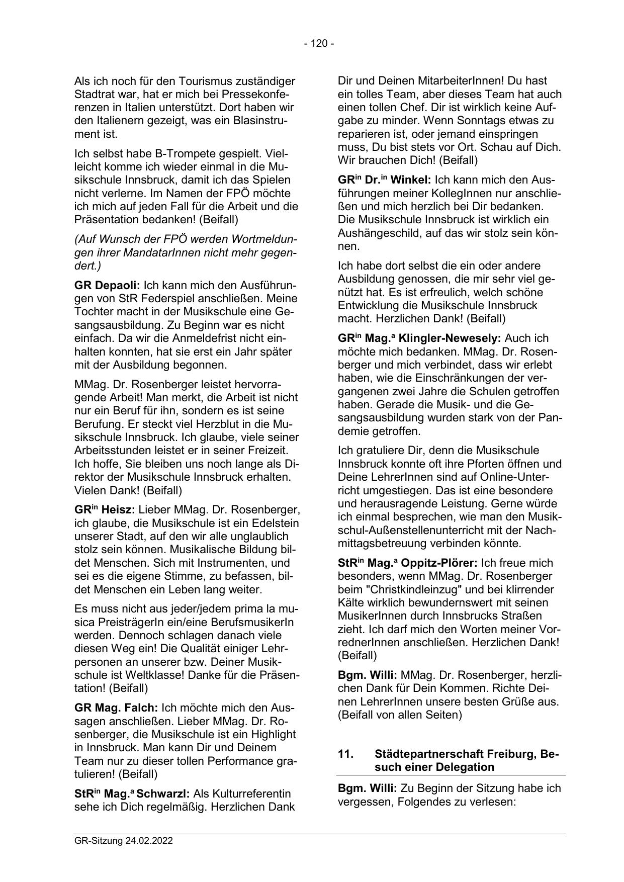 (Auf Wunsch der FPÖ werden Wortmeldungen ihrer MandatarInnen nicht mehr gegendert.)