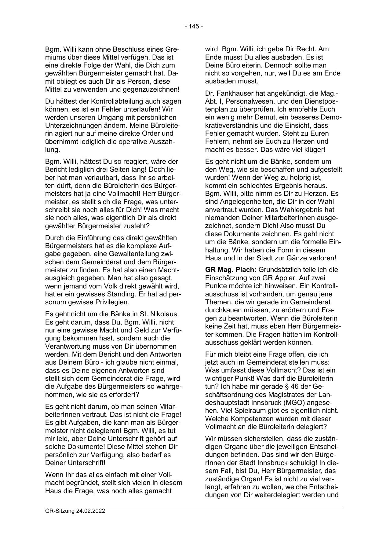 tun? Ich habe mir gerade § 46 der Geschäftsordnung des Magistrates der Landeshauptstadt Innsbruck (MGO) angesehen. Viel Spielraum gibt es eigentlich nicht.