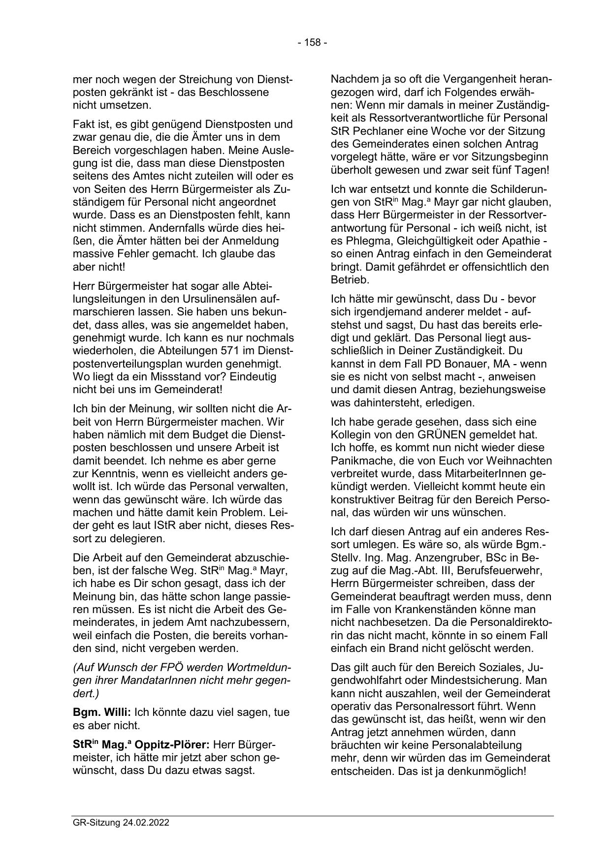 (Auf Wunsch der FPÖ werden Wortmeldungen ihrer MandatarInnen nicht mehr gegendert.)