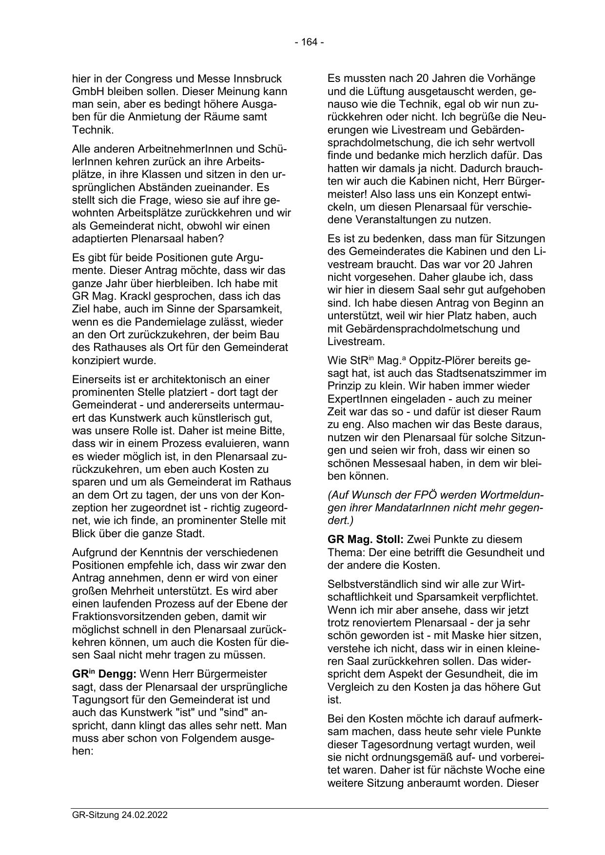 (Auf Wunsch der FPÖ werden Wortmeldungen ihrer MandatarInnen nicht mehr gegendert.)