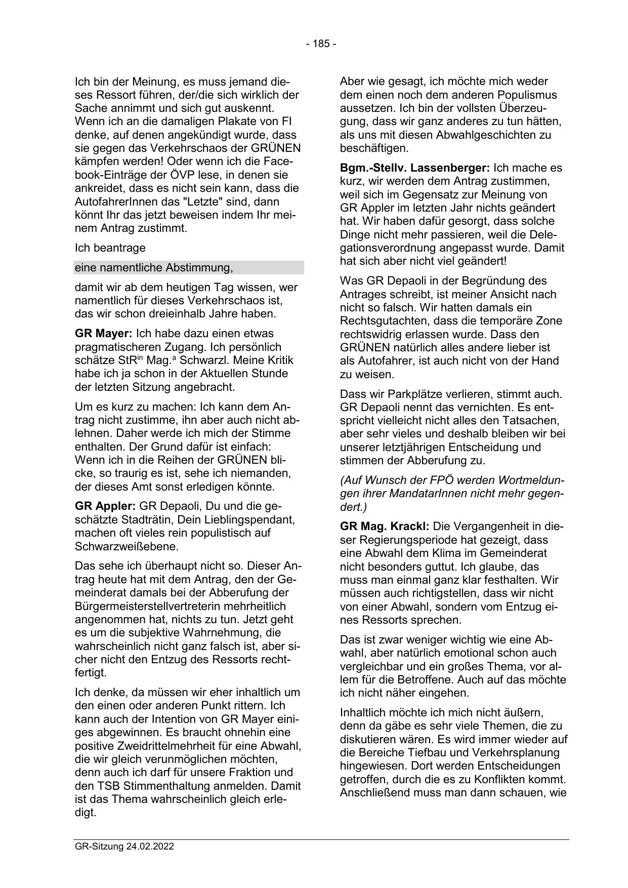 (Auf Wunsch der FPÖ werden Wortmeldungen ihrer MandatarInnen nicht mehr gegendert.)