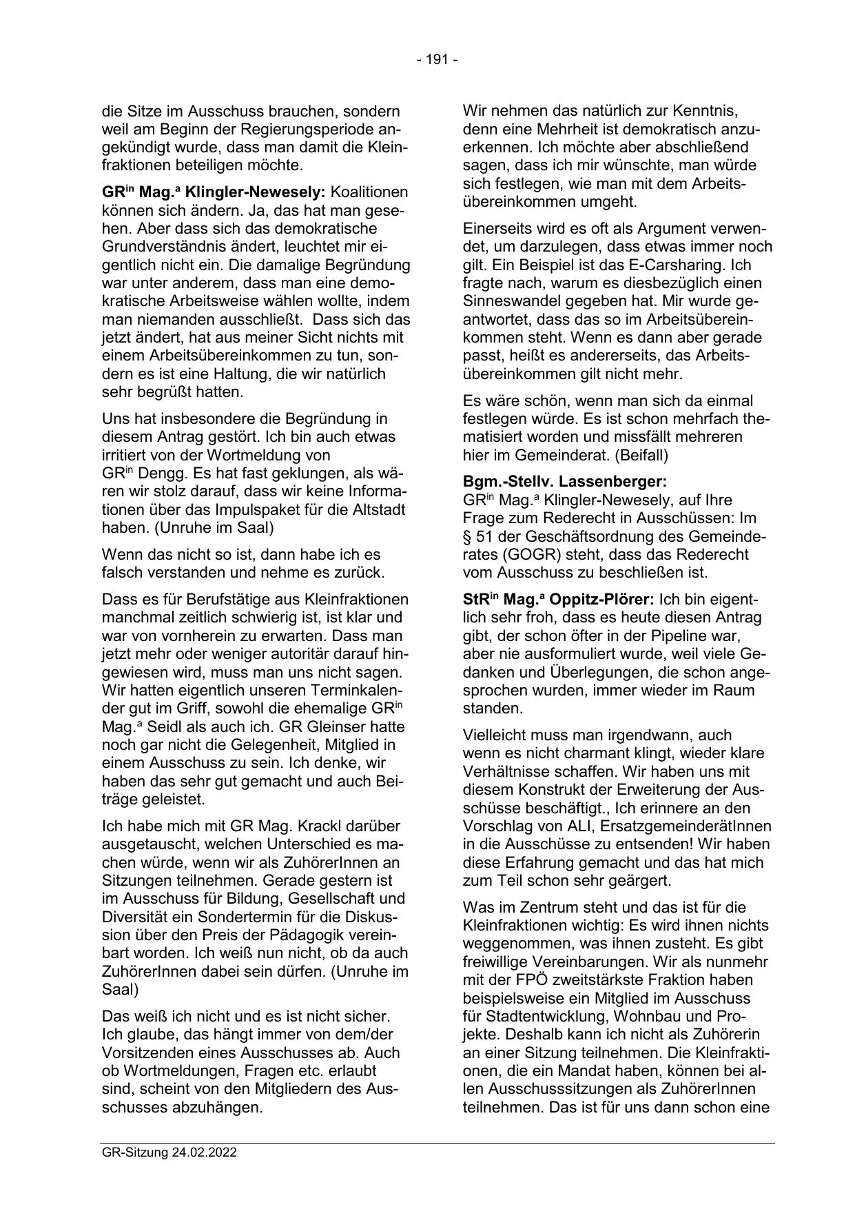 Mag.a Seidl als auch ich. GR Gleinser hatte