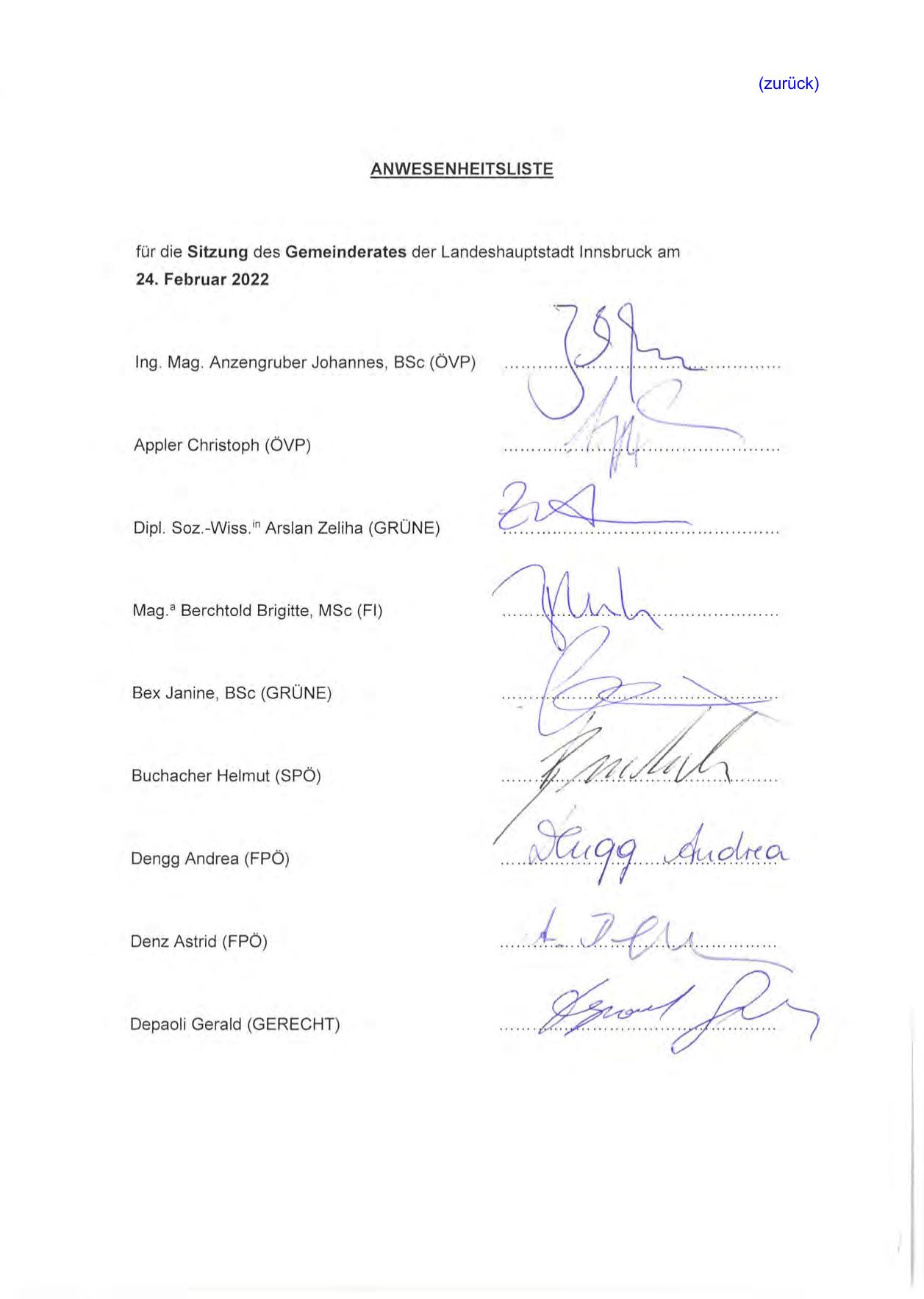 für die Sitzung des Gemeinderates der Landeshauptstadt Innsbruck am