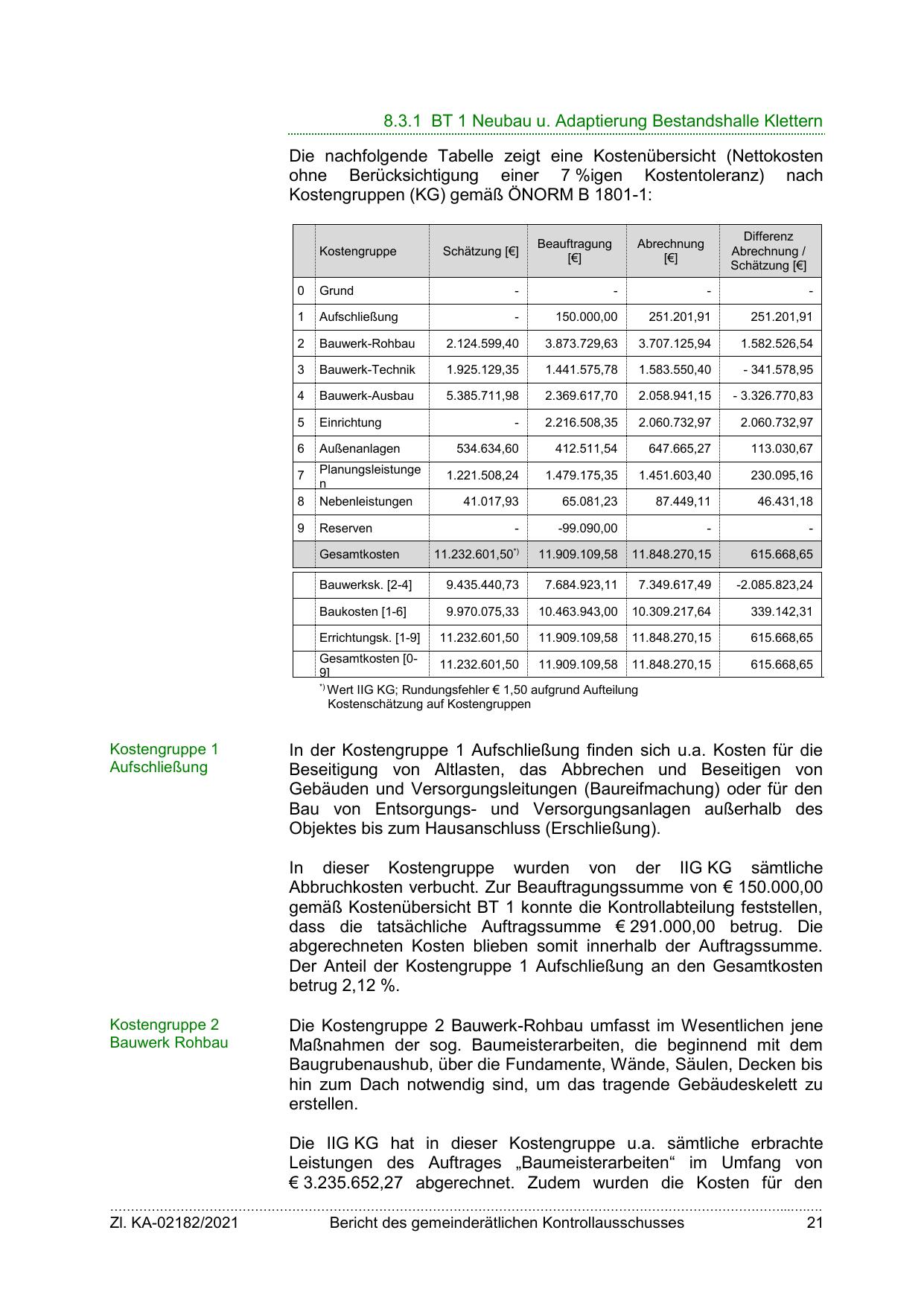 8.3.1 BT 1 Neubau u. Adaptierung Bestandshalle Klettern