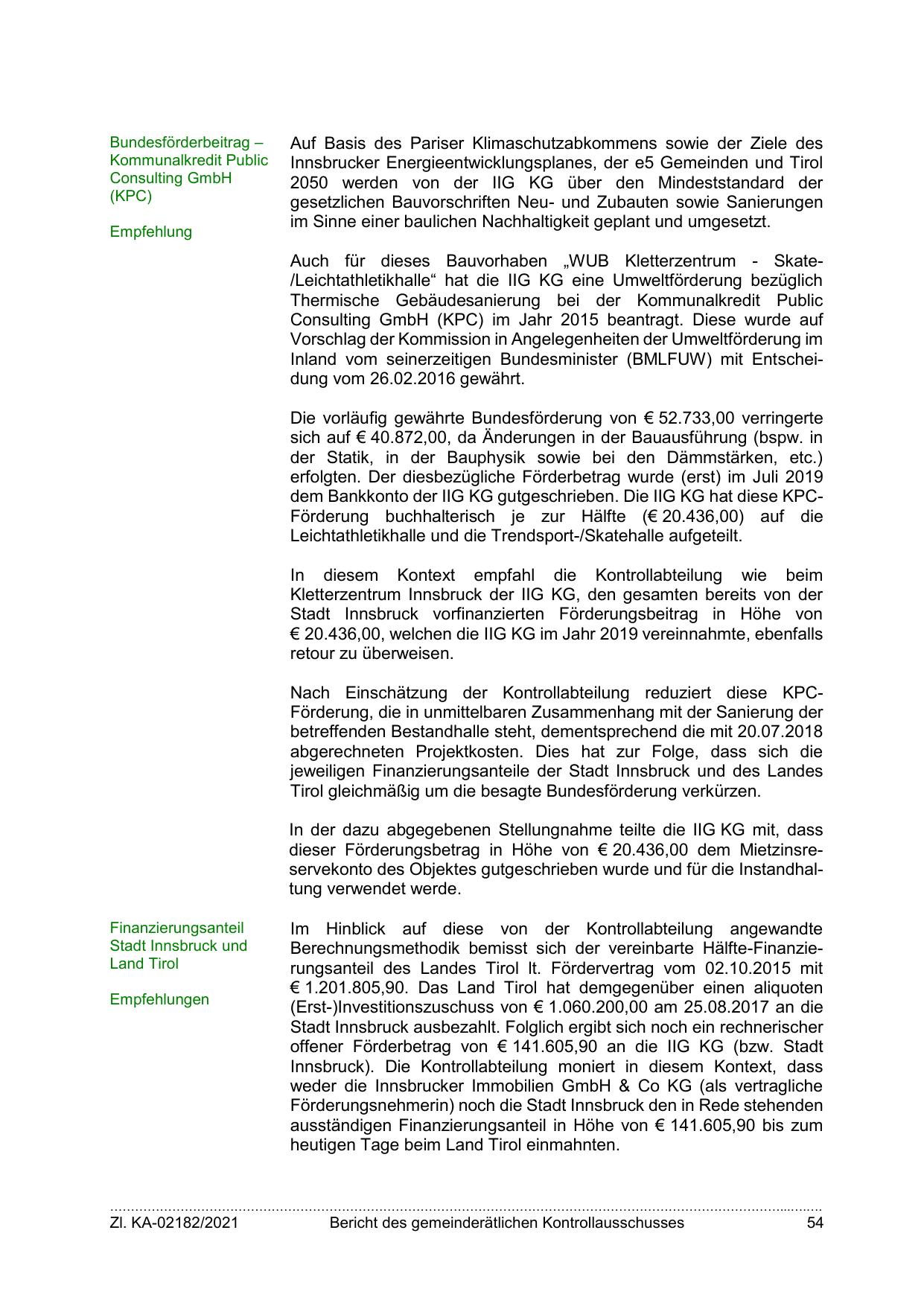 Innsbruck). Die Kontrollabteilung moniert in diesem Kontext, dass