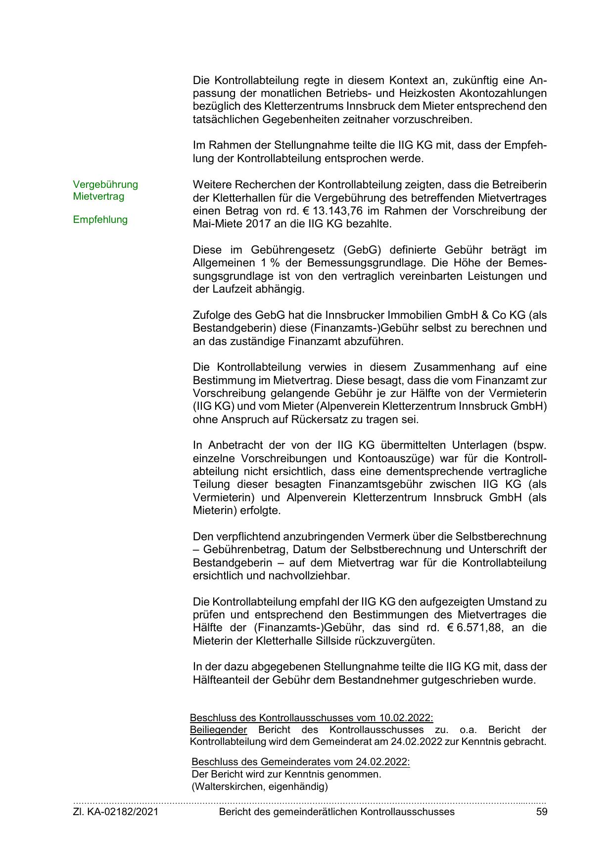 Kontrollabteilung wird dem Gemeinderat am 24.02.2022 zur Kenntnis gebracht.