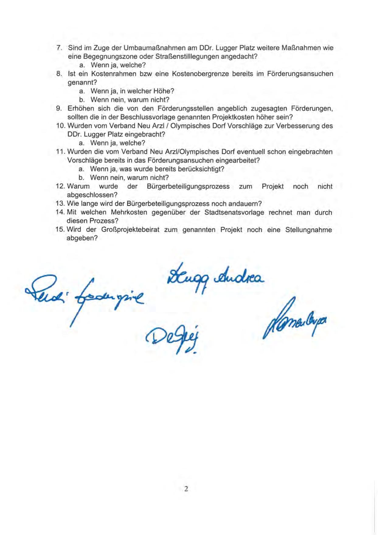 11. Wurden die vom Verband Neu Arzl/Olympisches Dorf eventuell schon eingebrachten