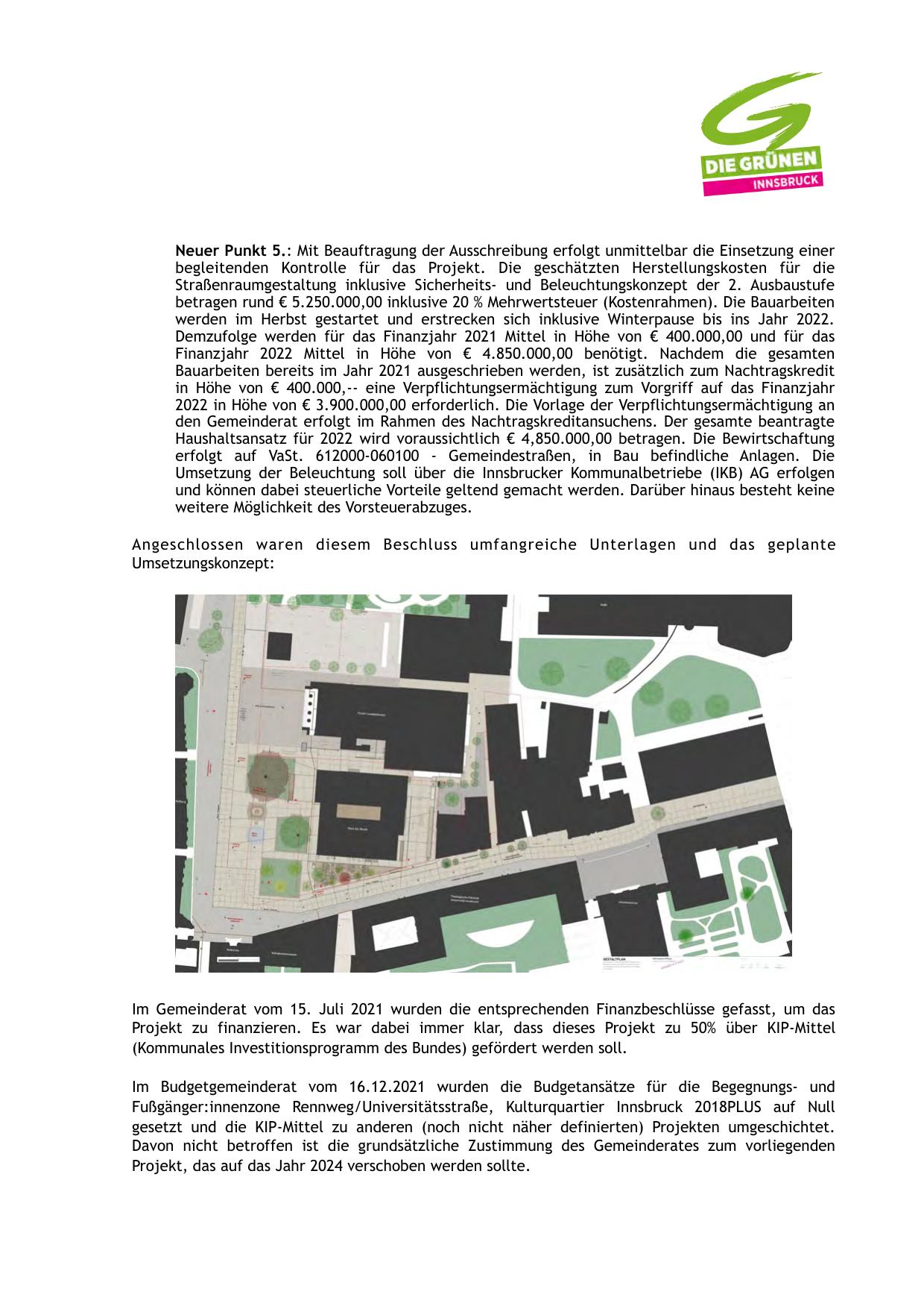 betragen rund € 5.250.000,00 inklusive 20 % Mehrwertsteuer (Kostenrahmen). Die Bauarbeiten