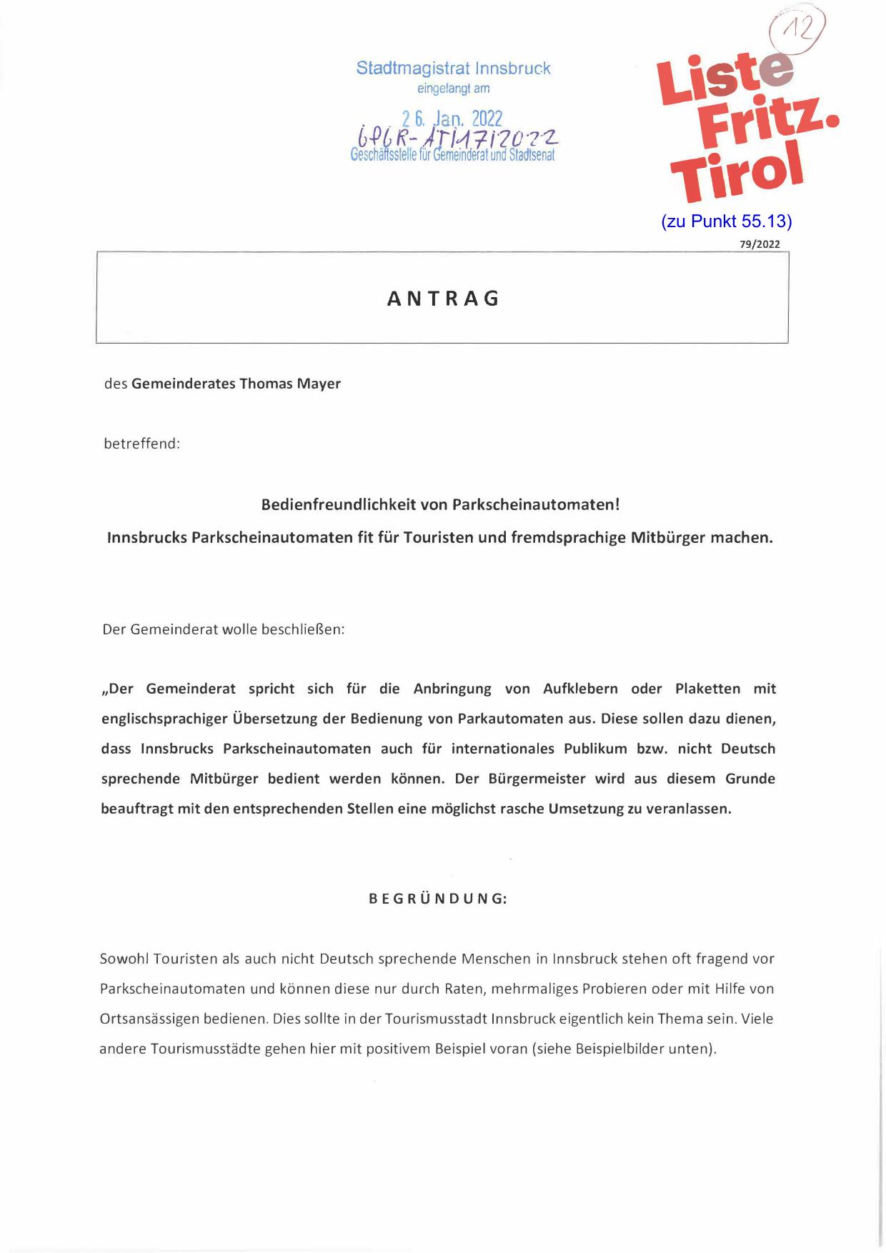 lnnsbrucks Parkscheinautomaten fit für Touristen und fremdsprachige Mitbürger machen.