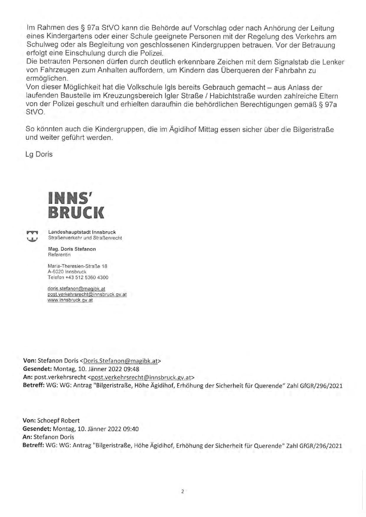 Betreff: WG: WG: Antrag "Bilgeristraße, Höhe Ägidihof, Erhöhung der Sicherheit für Querende" Zahl GfGR/296/2021